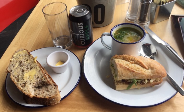Ich esse in der dem Kunstmuseum Baltic-Art, angeschlossenen Baltic Kitchen. Leider schmecken sowohl die reichhaltige Suppe wie auch das frisch zubereitete Sandwich nach nichts, schade!