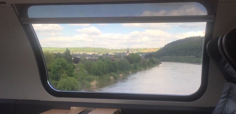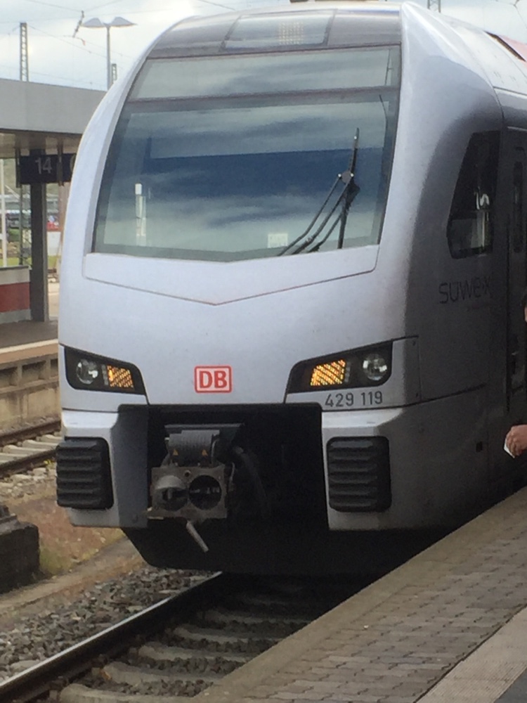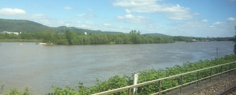Auch in Koblenz am Rhein wieder das gleiche Bild wie heute Morgen in Strassburg: viele Leute auf dem Bahnsteig. Die meisten können nicht warten, sie steigen ein, und schubsen, bevor auch nur die ersten raus können. Ich kann nicht anders als energisch zu reden, worauf mich einige verwundert anschauen, aber dann doch wieder aussteigen und zuerst die Leute drinnen, die jetzt an der Endstation des Zugs angekommen sind, aussteigen lassen, bevor sie selber wieder in den Zug rein gehen. Mühsame Geschichte!