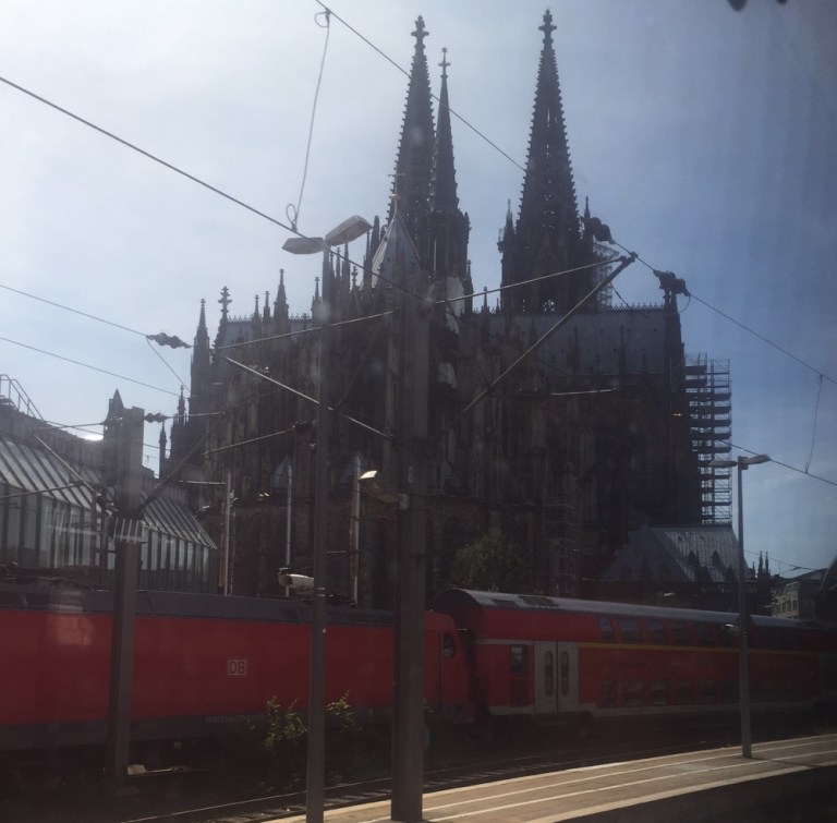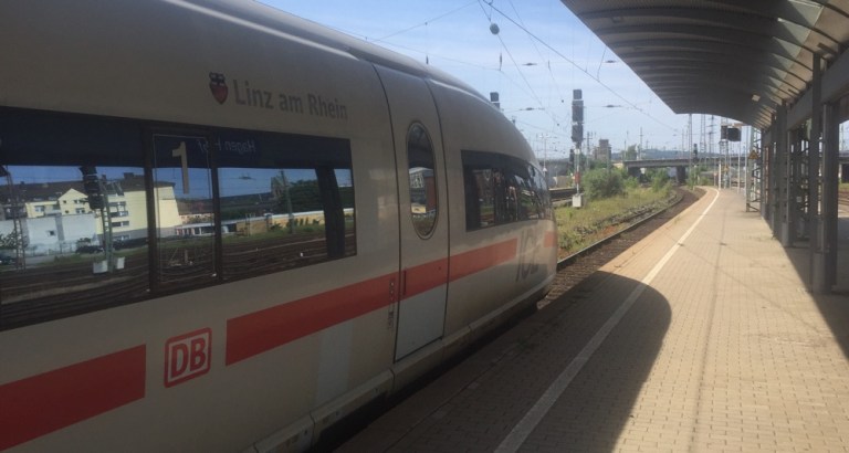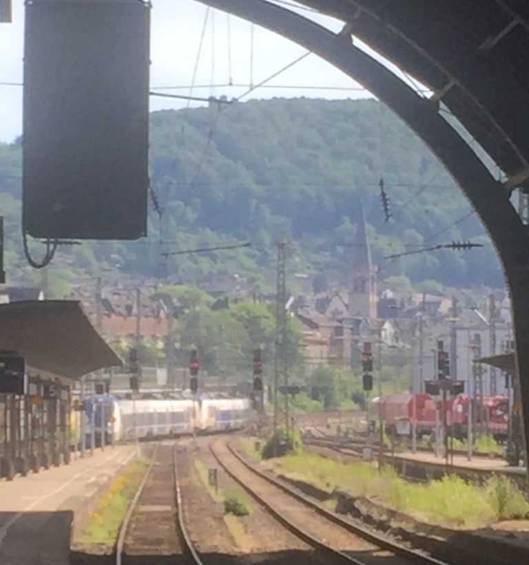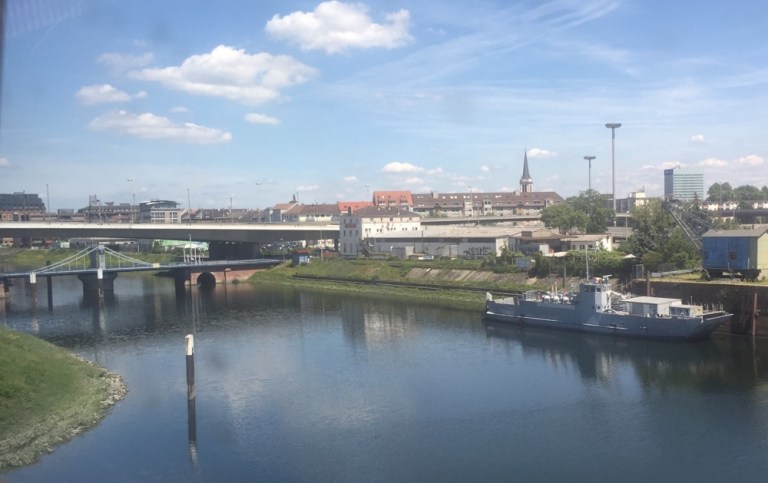 Wir dürfen sitzen bleiben, der Zug ändert kurzum seine Fahrtrichtung, so dass wir 2 Mal in den Genuss einer Rheinquerung kommen.