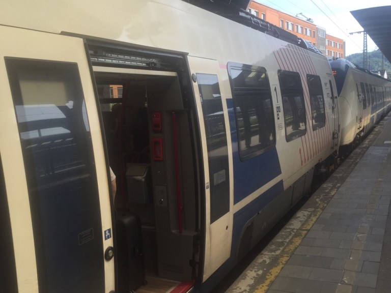 Wuppertal (Schwebebahn), erreichen wir kurz vor 16 Uhr Hagen Hauptbahnhof. Für uns heisst es nun umsteigen und Füsse vertreten. Die Hitze ist extrem. Bin bald Bachnass!