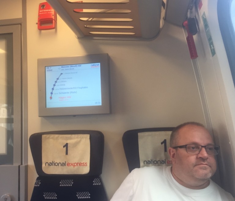 16.22 ab Hagen fahren wir in einem klimatisierten, angenehm kühlen Zug von National Express durchs typische Ruhrgebiet nach Nordosten.
