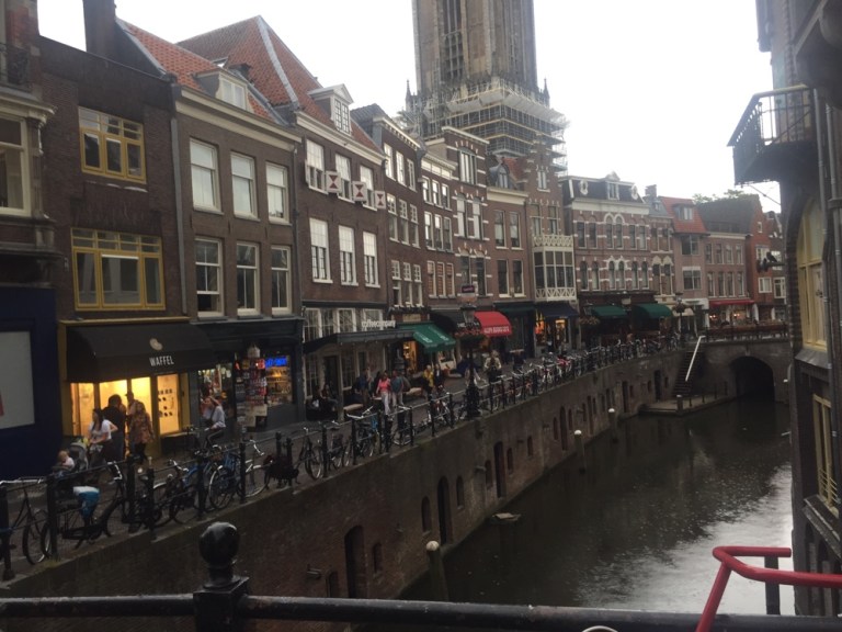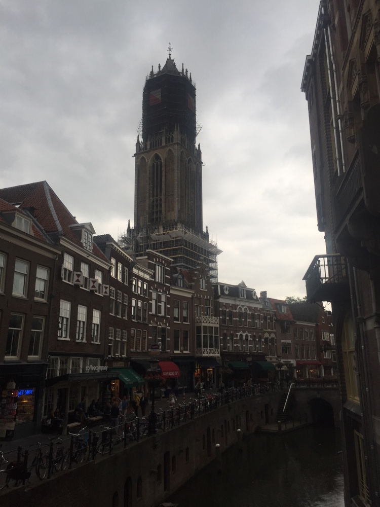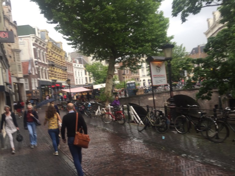 Trotz drohenden Niederschlags machen wir dann einen kurzen Rundgang an die Oudegracht (https://nl.m.wikipedia.org/wiki/Oudegracht_(Utrecht)), die Hauptschlagader der Stadt.