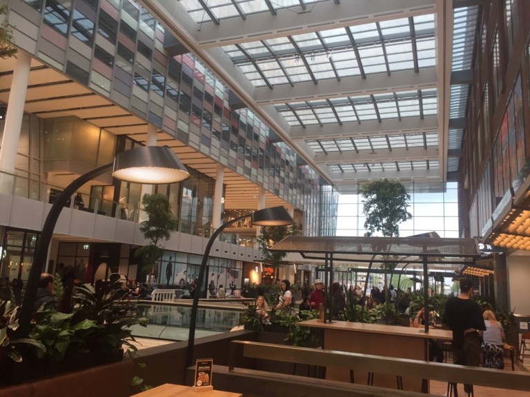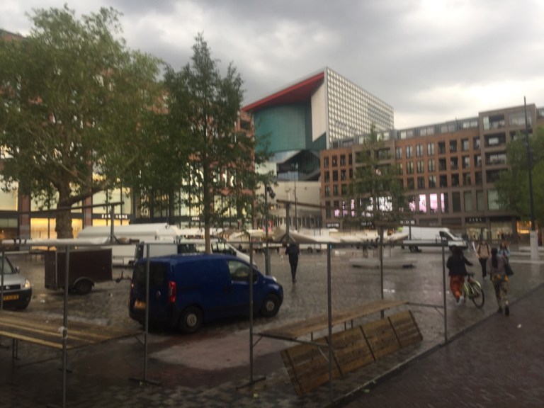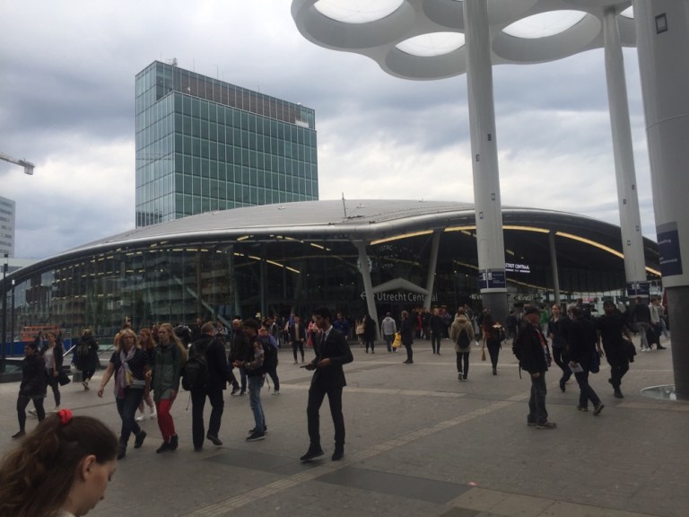 16.37 habe ich genug vom Museum. Zusammen mit anderen fahre ich mit dem Zubringerzug zurück zum Hauptbahnhof. Spaziergang durch das moderne Utrecht mit überdachtem Bahnhofsplatz und