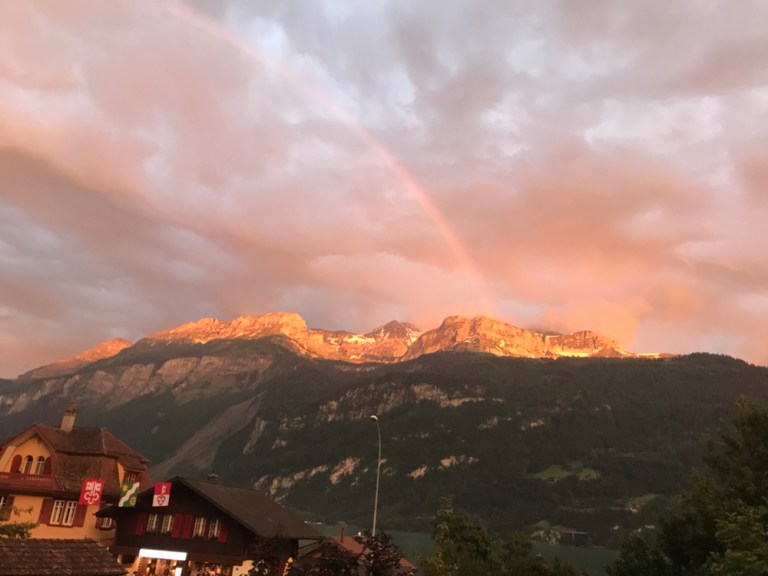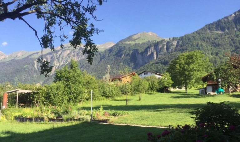 Auf der Planalp (https://de.m.wikipedia.org/wiki/Planalp), 1341 Meter über Meer, erwarten uns weidende Kühe und blühende Wiesen.