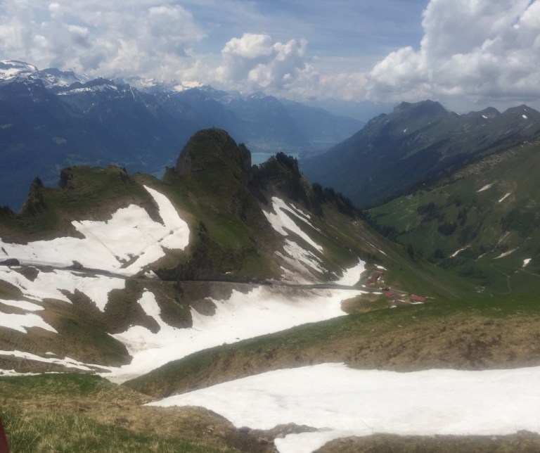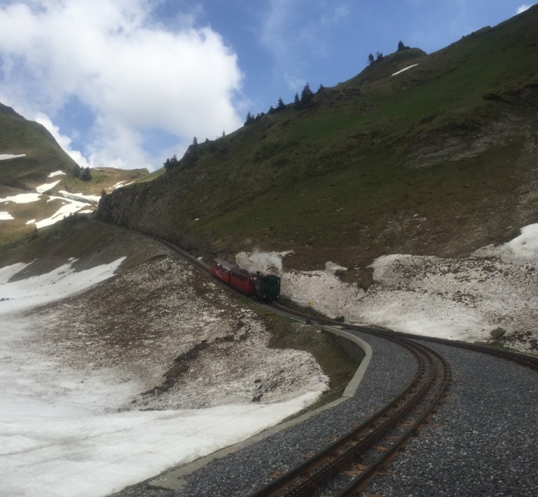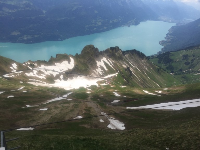 Die sommerliche Wärme ist allerdings schon so gross, dass ich nicht laufen mag, sondern kurz vor Mittag mit der Dampf-Zahnradbahn (https://brienz-rothorn-bahn.ch) bergauf fahre.