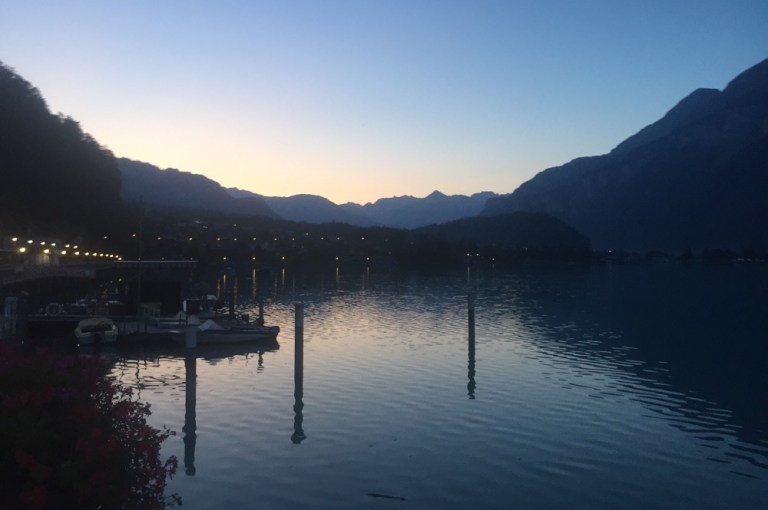 6:15 Uhr aus dem Haus. Immerhin es ist schon hell, aber der Sommer ist vorbei. Die Berge rund um Brienz ragen dunkel herauf, nur zaghaft wird es im Osten hell, die Sonne lässt aber noch lange auf sich warten.