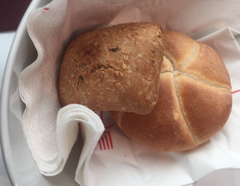 Im bedienten, dafür aber teureren Teil der rollenden Gaststätte hat es einzelne freie Sitzplätze. Lasse mich in die Polster fallen und bestelle mir ein Frühstück “süss“.