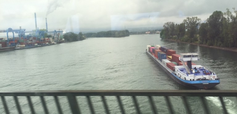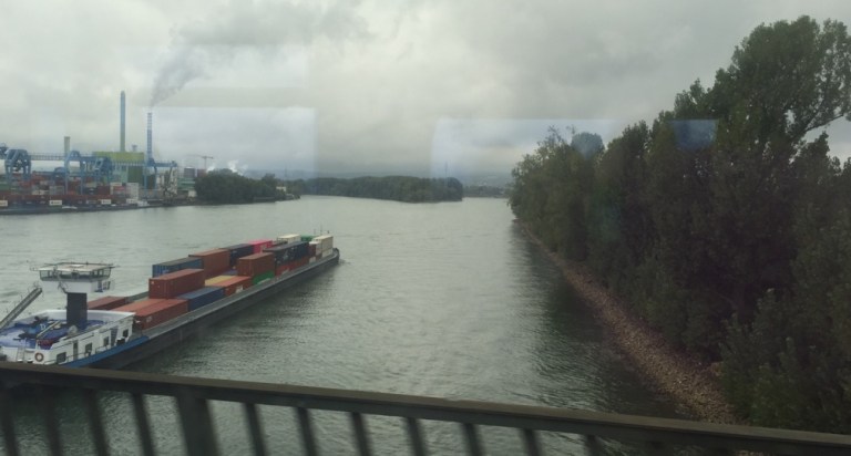Kaum drinnen fahren wir ab. Im Vorbahnhof fährt der Zug aber nicht den erwarteten Weg, sondern in Richtung Höchst. Mein Problem ist, dass ich den Fahrplan nicht studiert habe, und erst jetzt merke dass diese Umwegefahrt viel länger dauert!