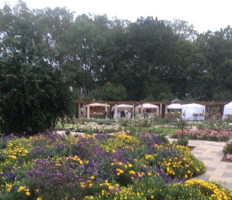 Ich geniesse den Blumenduft im Rosengarten, spaziere an Ständen mit allerlei Krimskrams vorbei, setze mich immer wieder mal hin und geniesse den Nachmittag.