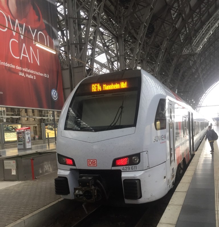 Mit einem RE fahre ich von da nach Frankfurt (Main).