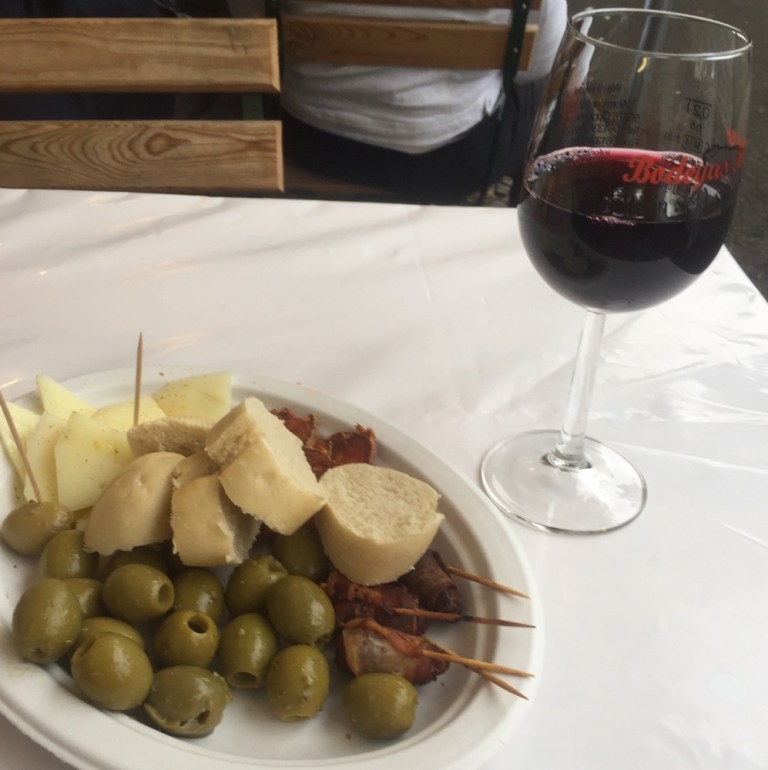 An einem Stand mit wenig Leuten, bestelle ich mir ein Plättchen und ein Glas Naturkost!