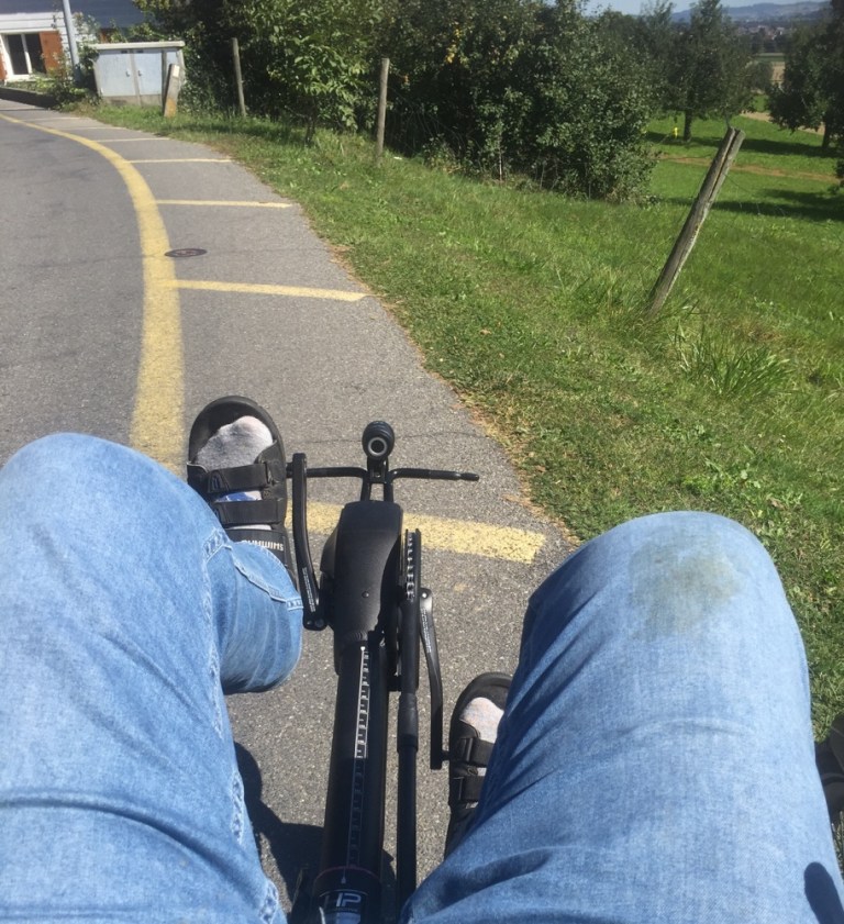 Der fortschreitende frühzeitige Zerfall meines Körpers verunmöglicht es mir, aus Gründen des mangelnden Gleichgewichts definitiv, mein seit vielen Jahren verwendetes Liegerad zu verwenden.