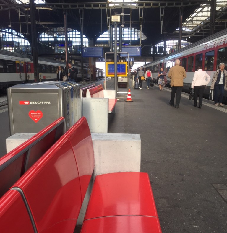 10.13 Uhr fährt der Zug Richtung Grenze ab. Bin zum Glück rechtzeitig bei meinem Sitzplatz, habe also noch Zeit die sowohl innen wie auch aussen total verschmutzten Fensterscheiben zu reinigen. Schon im badischen Bahnhof in Basel werden die letzten freien Sitzplätze belegt.
