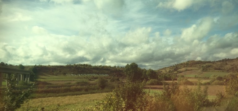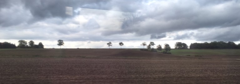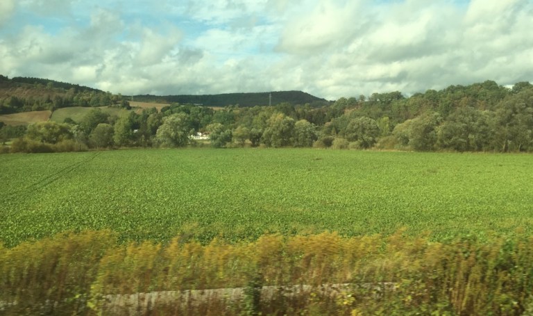 Ich geniesse die Fahrt, döse immer wieder ein. Der Himmel überzieht sich, immer mal wieder trüben Regensträhnen die freie Sicht. Kurz nach 13 Uhr erreichen wir Frankfurt am Main. Bin verwundert, dass unser Zug nur 2 Minuten Verspätung hat. Bestelle mir aus dem Speisewagen einen Blattsalat mit Hüttenkäse und roter Beete. Dazu trinke ich mitgenommenen Schweizer Alpenkräutertee aus der MIGROS.