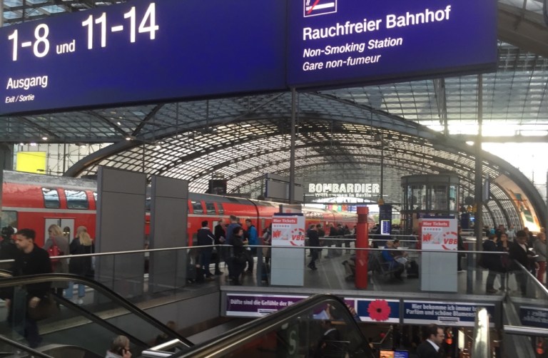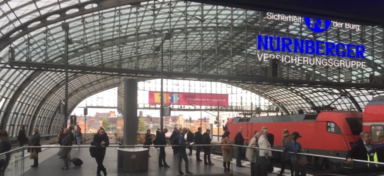 Kurz nach 18 Uhr endet der Zug in Berlin Hauptbahnhof (tief).