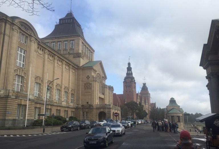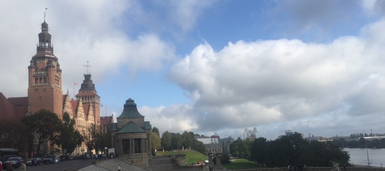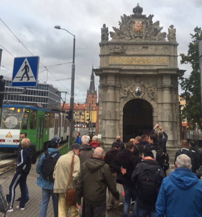 Ausschlafen bis 8. Gemeinsames Frühstück mit den anderen Funtreffen Teilnehmern. 9:20 Uhr stehen wir alle in der Hotelhalle bereit zum Stadtrundgang durch Szczecin. Bald kommt auch unsere Stadtführerin. Die gute Frau spricht uns immer wieder mit „meine Damen und Herren ….“ an, ist komplett verwirrt, dass nur Männer ihr durch die Stadt folgen; Ich denke Andreas der Hauptorganisator hat es ‚vergessen‘ die Dame aufzuklären. Henusode, es gibt schlimmeres im homophoben Polen.