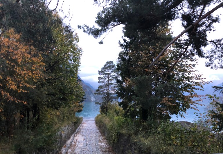 auf dem die so hell leuchtende Brienzer Kirche steht, zu radeln.