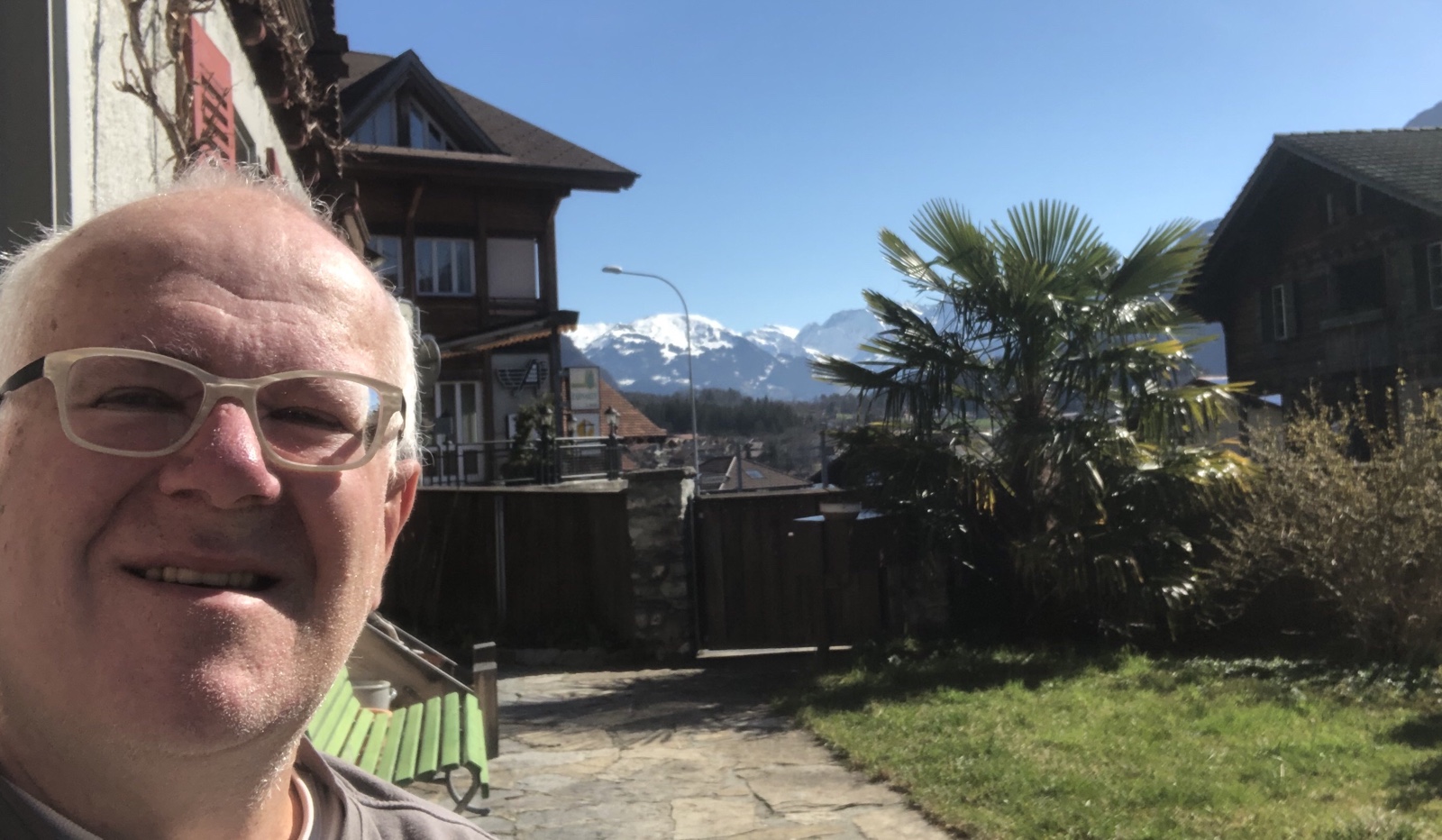 Ich geniesse die warmen Mittagsstunden vor dem Haus an der Sonne und