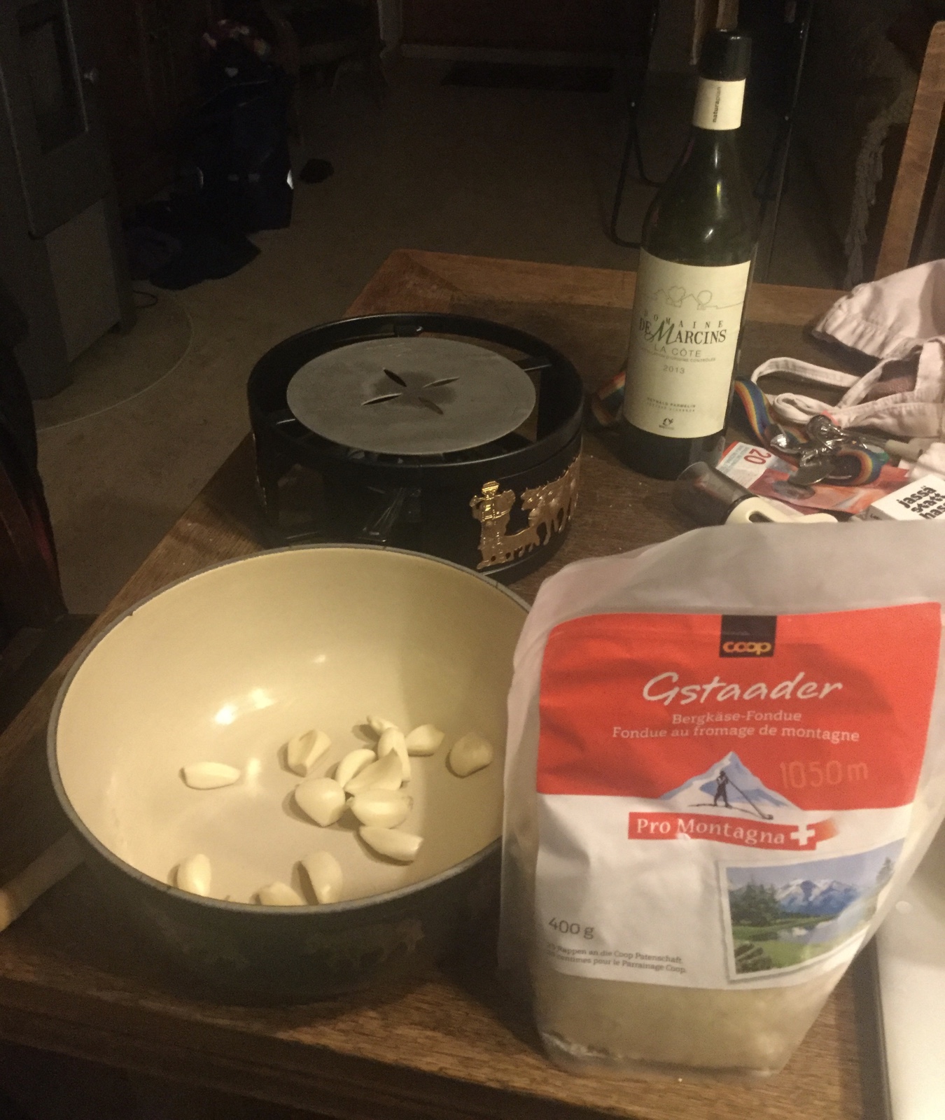 Zu Hause angekommen, habe ich einen riesigen Hunger und eine nicht zu bändigende Lust auf ein BergkäseFondue aus meiner Geburtsregion. E Guete!
