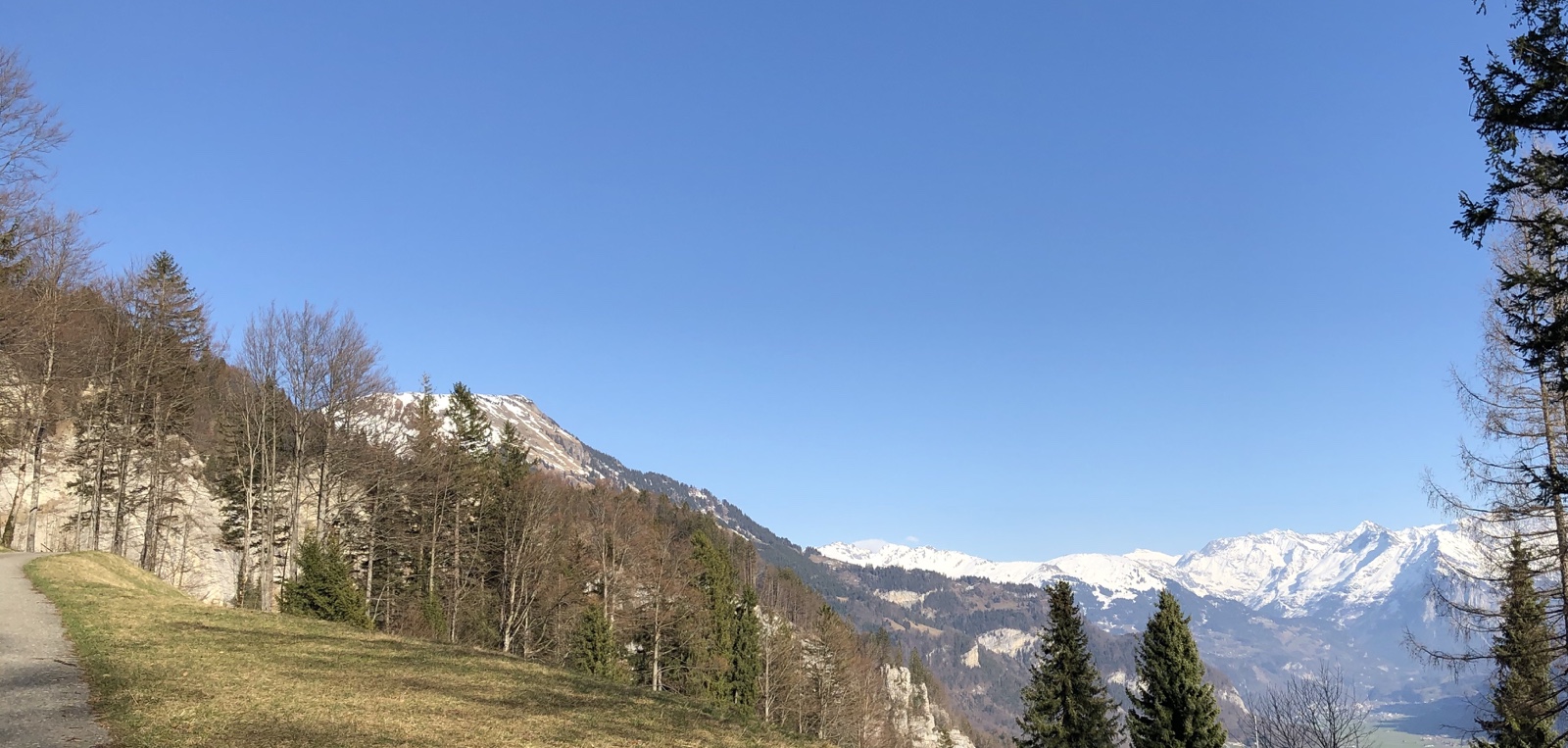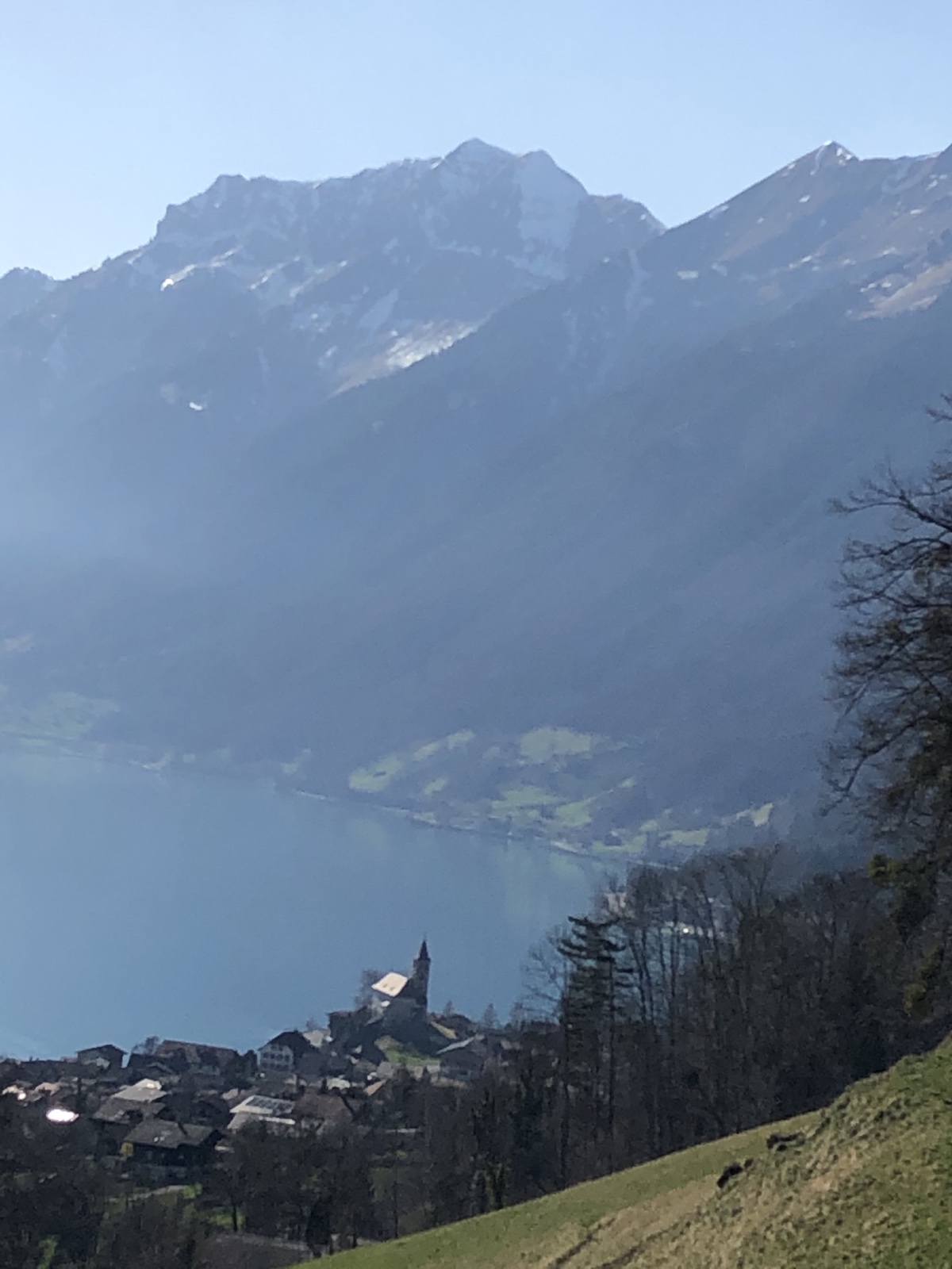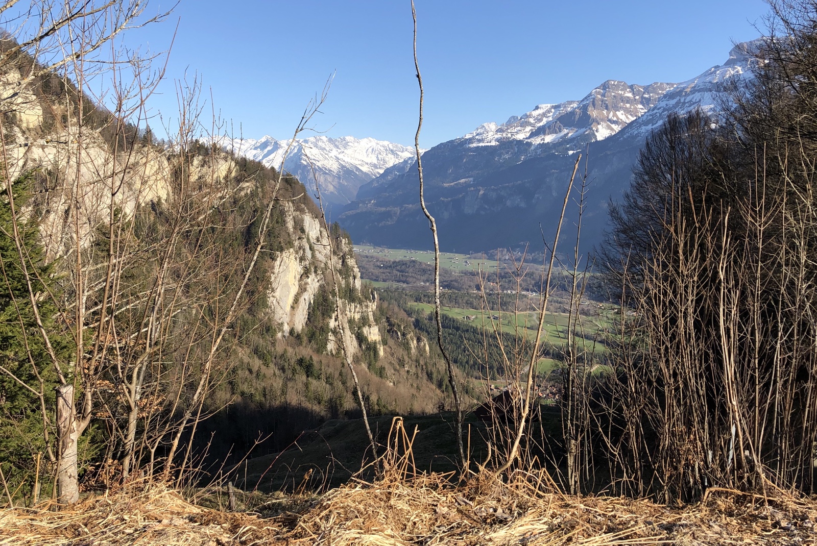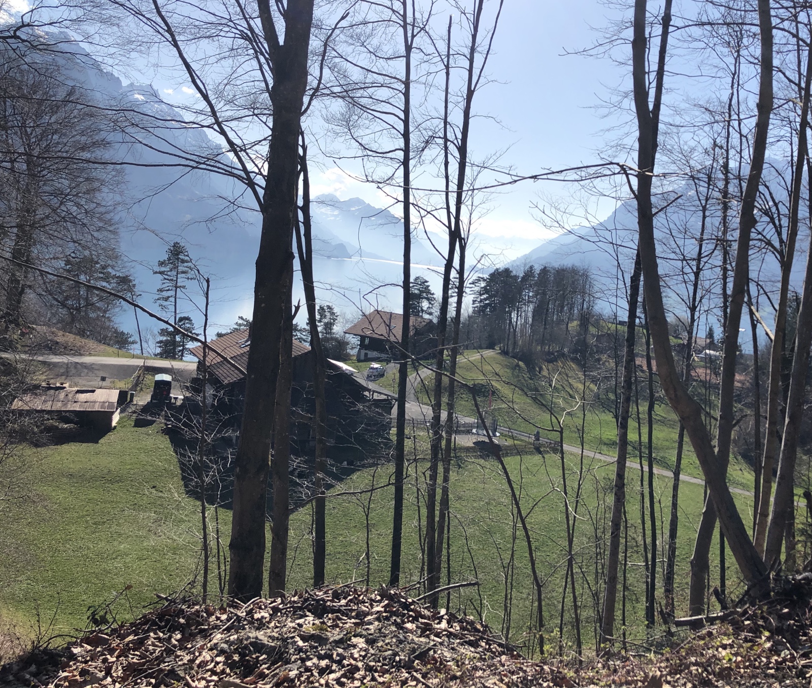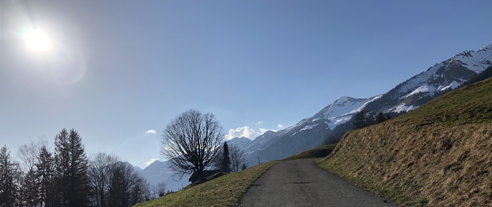 Fast kein Autolärm hallt aus dem Tal rauf. Ich höre primär ein wunderbares Vogelzwitschern und Frühlingshaft lebendige Bäche.