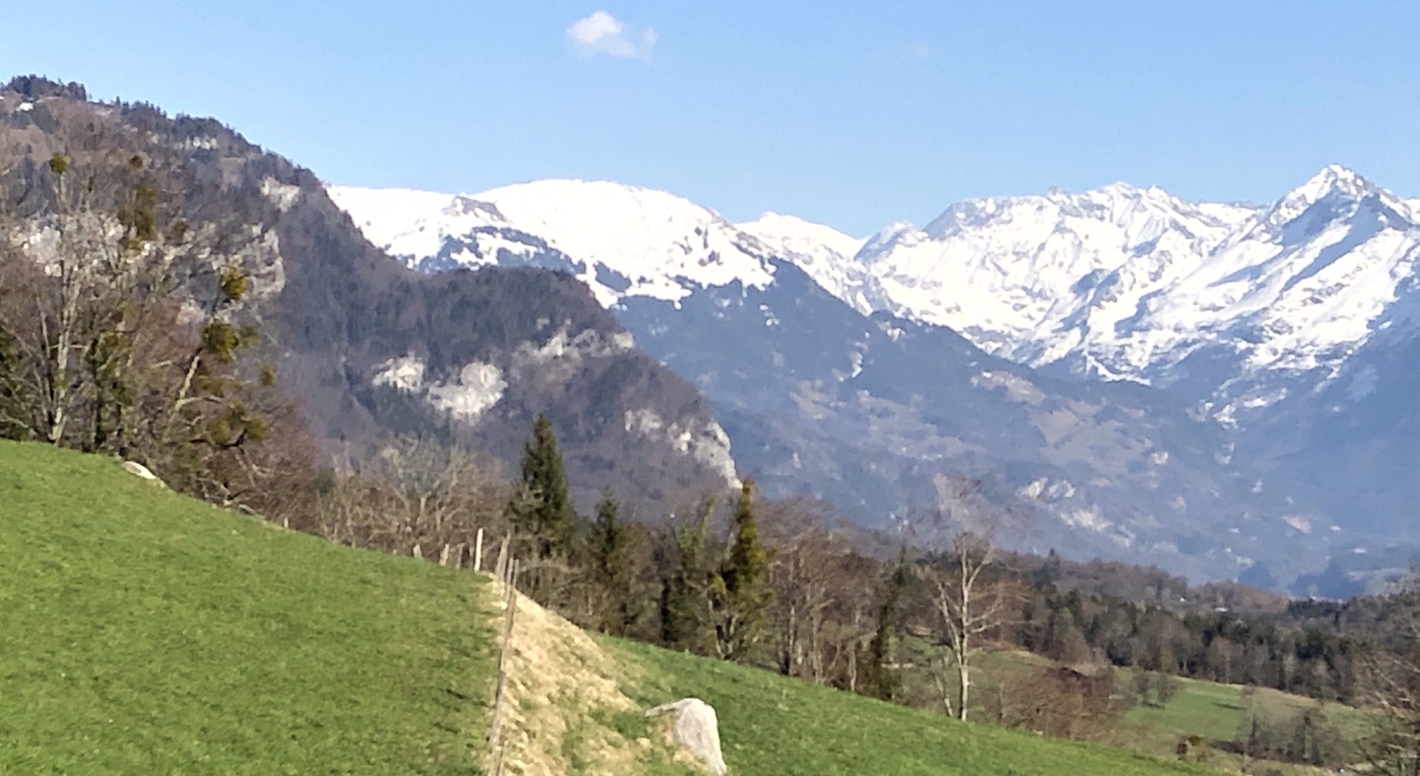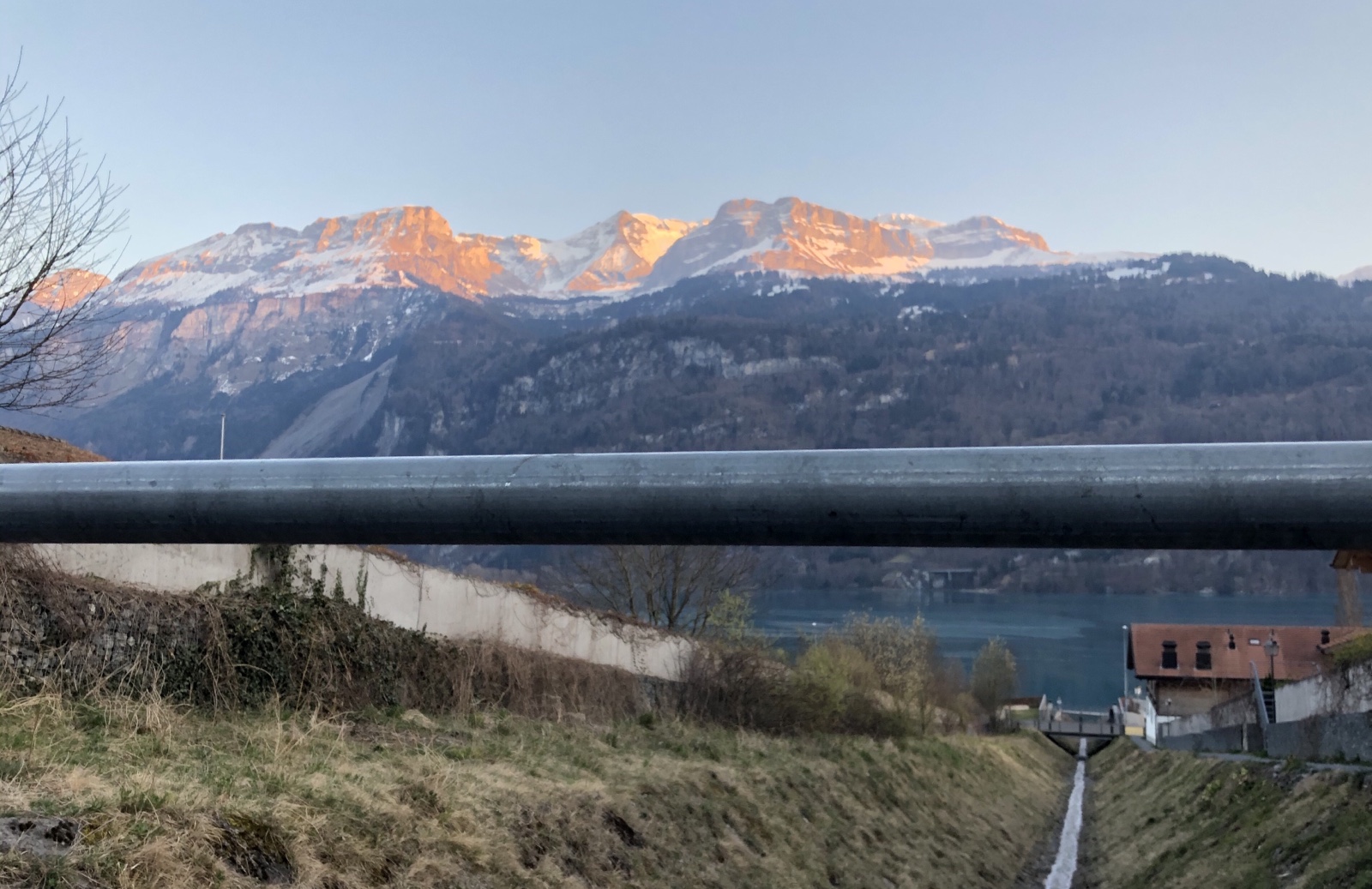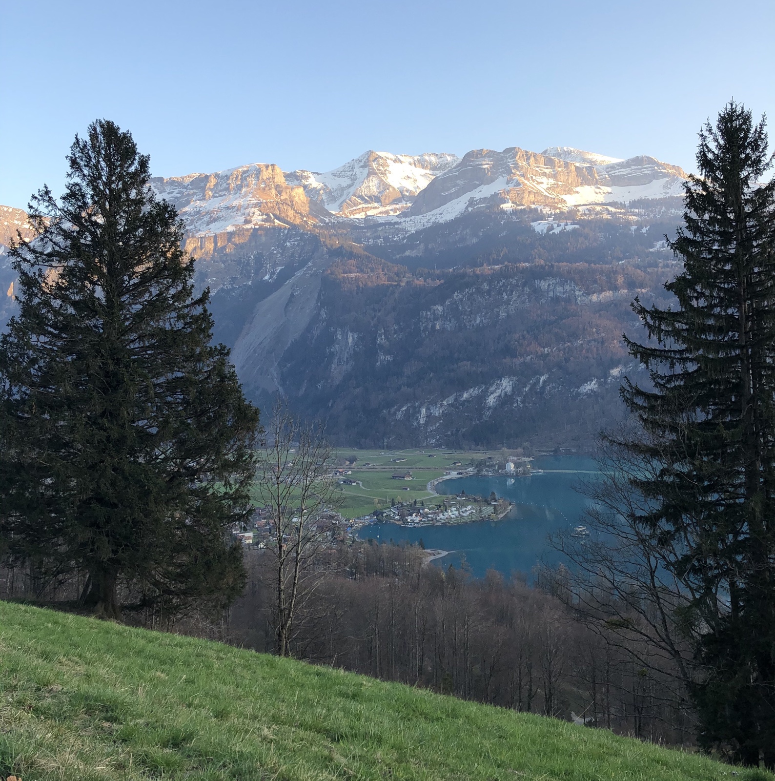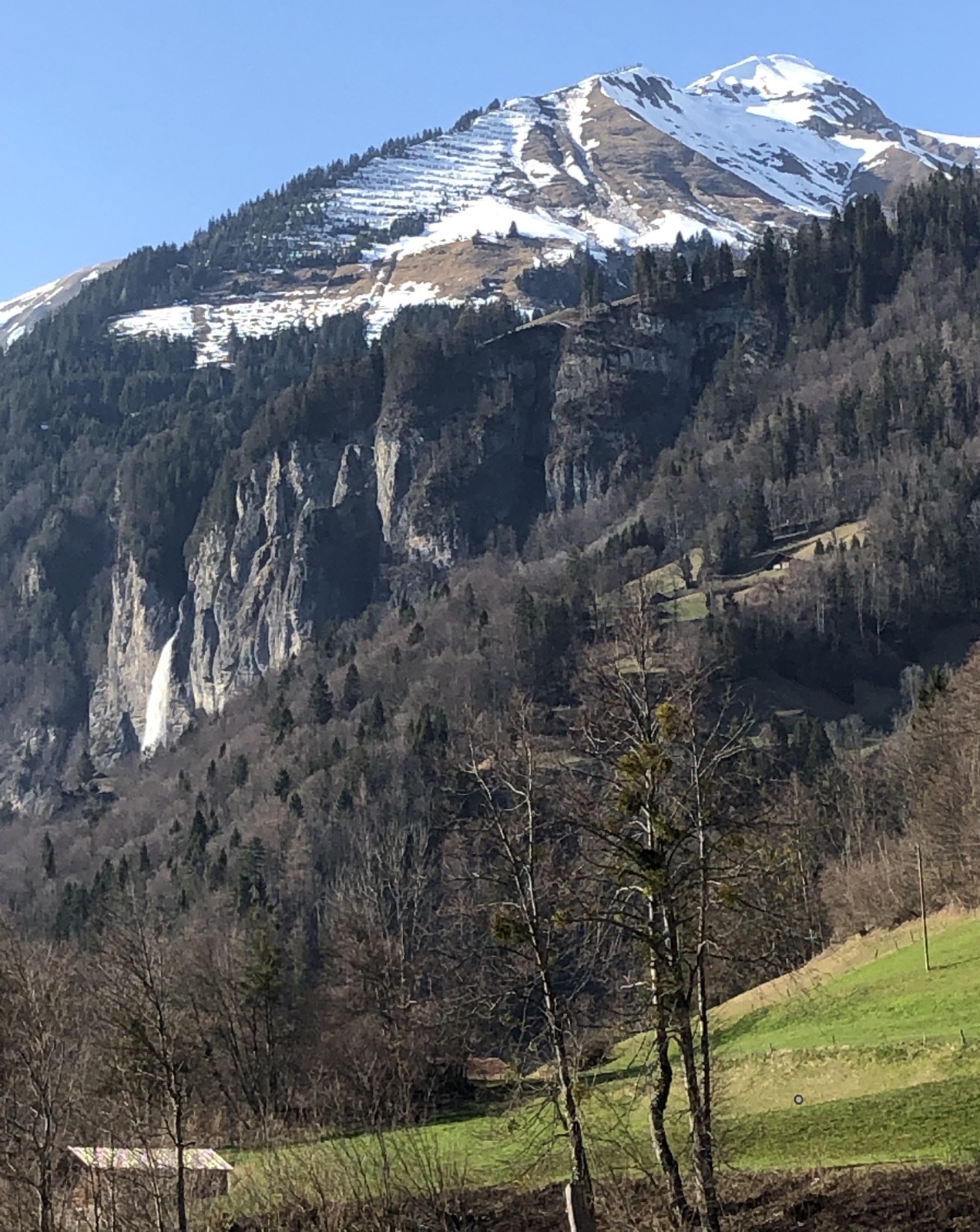 Fast kein Autolärm hallt aus dem Tal rauf. Ich höre primär ein wunderbares Vogelzwitschern und Frühlingshaft lebendige Bäche.