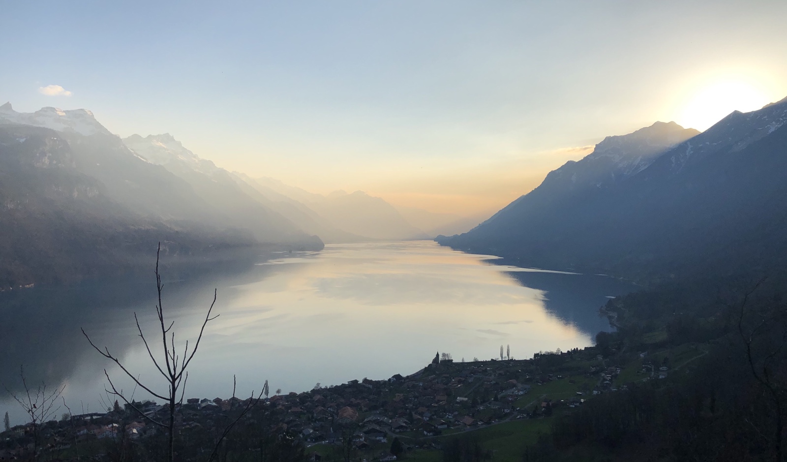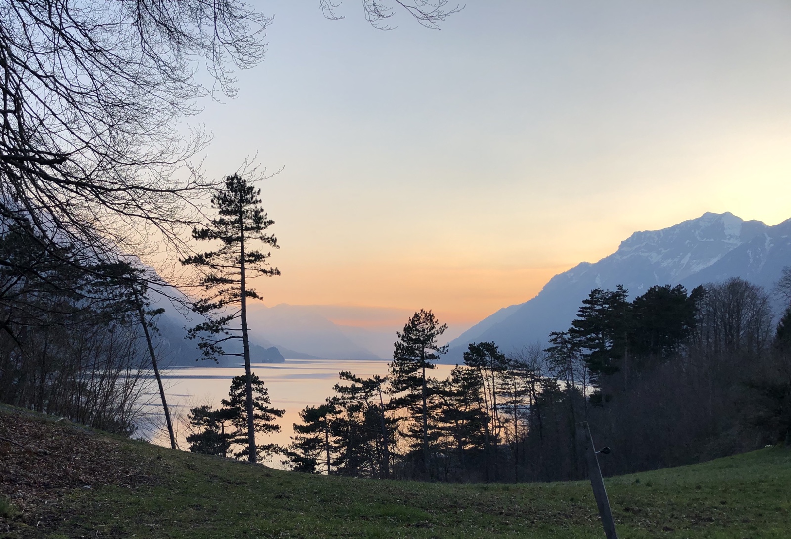 Etwas unter diesem höchsten Punkt ist die Aussicht auf die Berge rundherum und den See tief unten am Schönsten. Ich kann mich fast nicht losreissen, obwohl die Sonne bald hinter dem Briensergrat verschwinden wird.