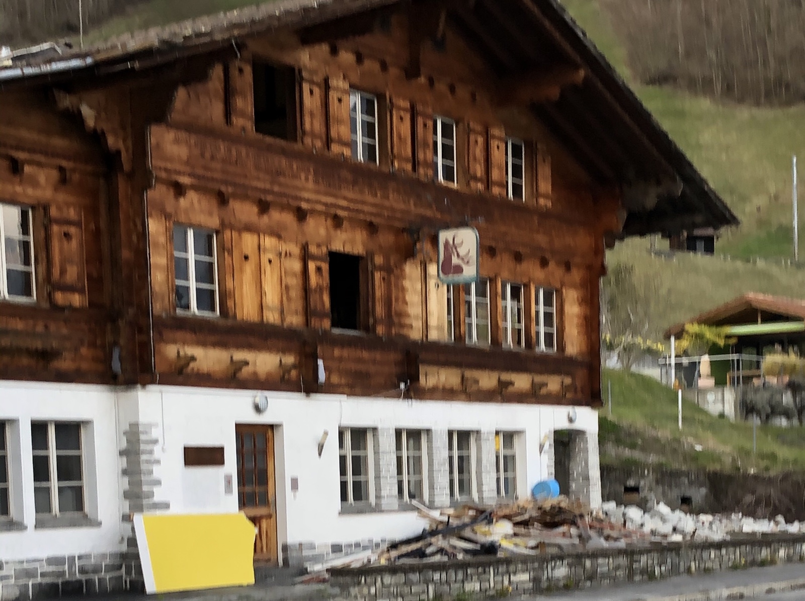 Vom Zug aus ist mir schon etliche Male die schlimm aussehende Ruine des ehemaligen Gasthofs Hirschen aufgefallen.