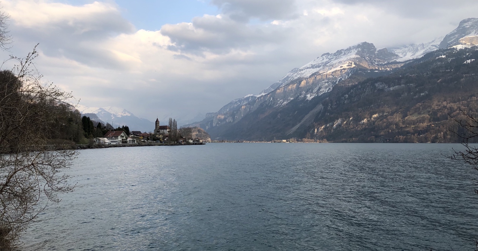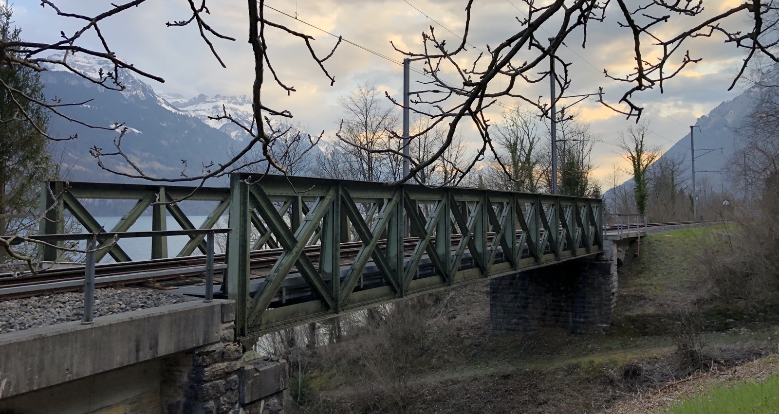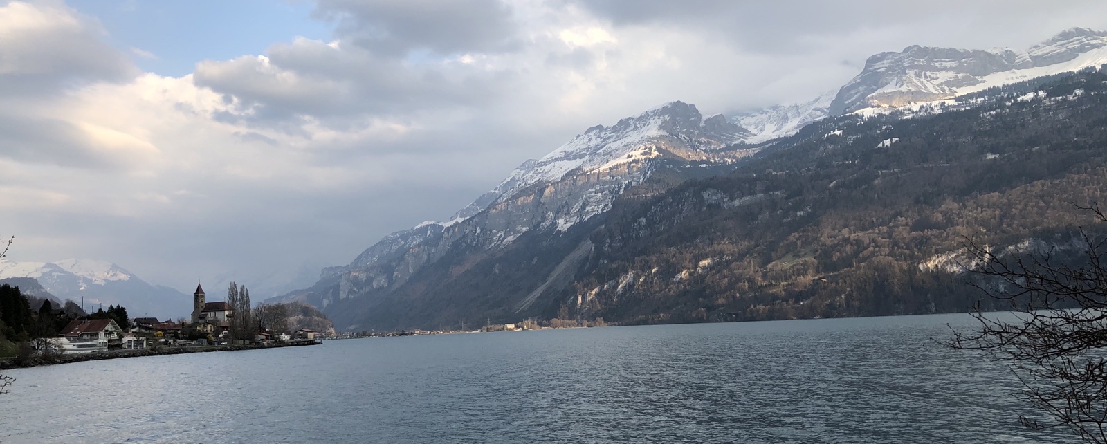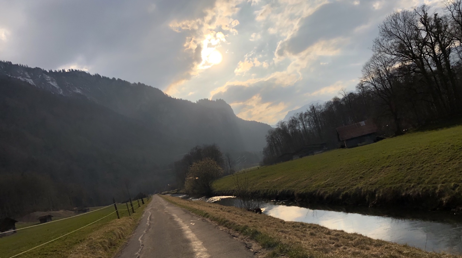 radle nun linksseitig des friedlich dahinplätschernden Oltschikanals dem Brienzersee zu. Die Aussicht zum Brienzerseegrat vom Brünigpass bis zum Harder ist gegenwärtig toll. Trotz der Nordlage sind die steilen Hänge jetzt schon, grösstenteils nur noch grün-weiss gesprenkelt, schön!