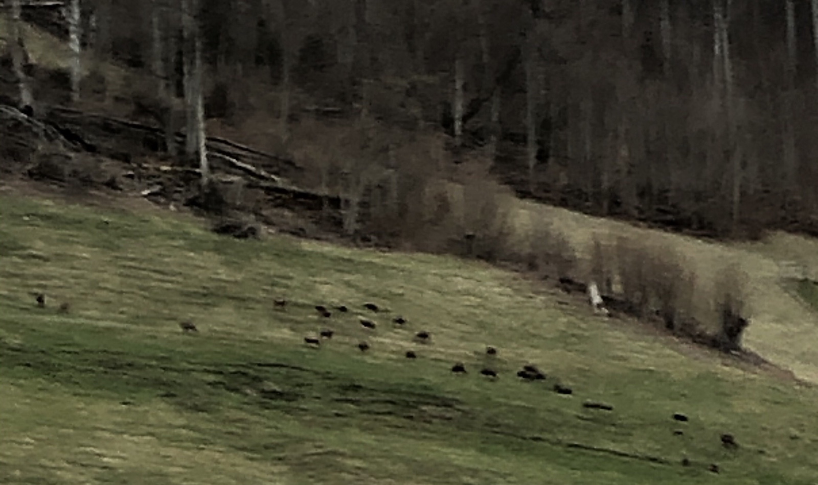 Auf der Heimfahrt sehe in Oberried aus den Augenwinkeln eine Herde von circa 30-50 Gämsen. Die Schneefallgrenze muss also tief runter gefallen sein.