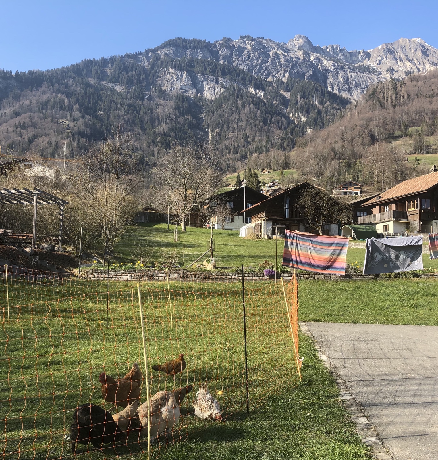 Ich trinke meinen Frühstückskaffee dick angezogen draussen vor dem Haus und lese diverse elektronische Zeitungen. Bei mehreren Rundgängen ums Haus geniesse ich die sich nun jeden Augenblick verändernde Natur an Bäumen und Büschen, die spriessenden Blüten.