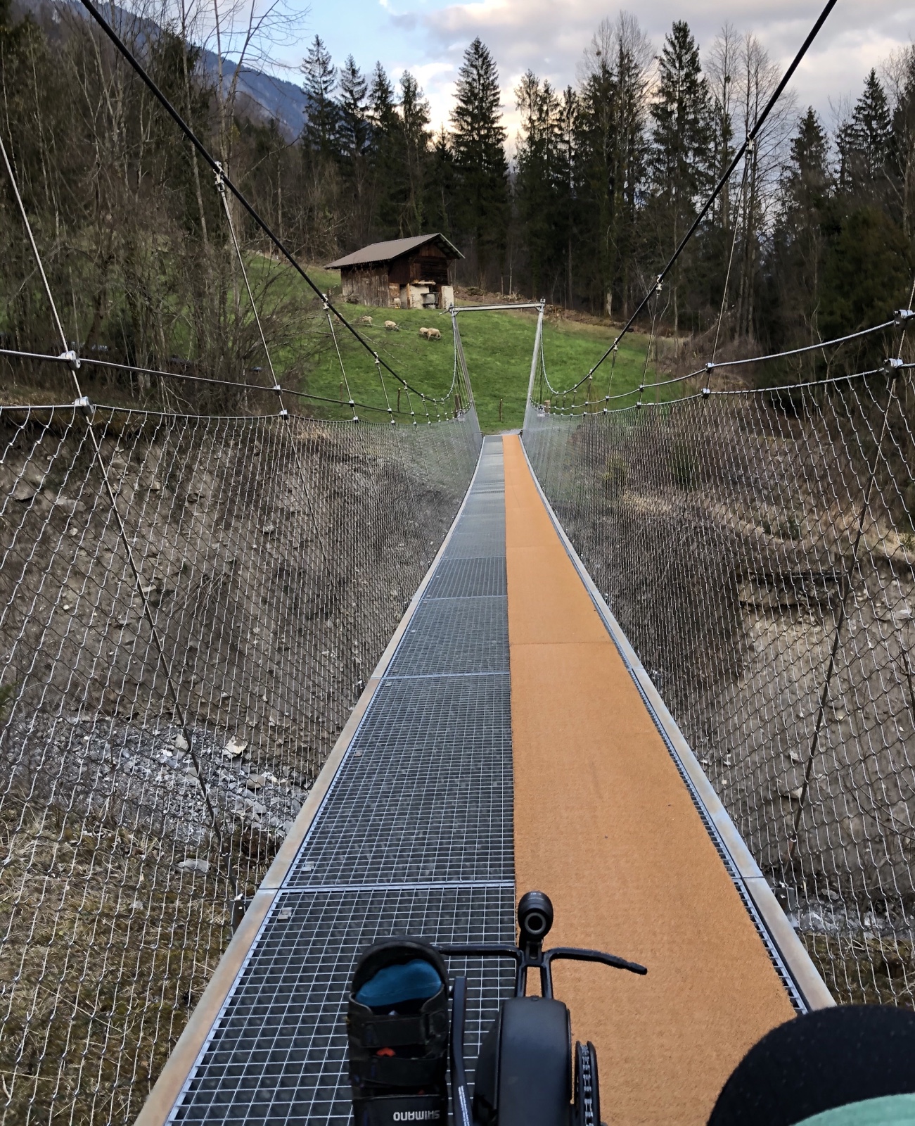 Über die Hängebrücke über den Ofenbielengraben rolle ich runter zum Hellgraben.