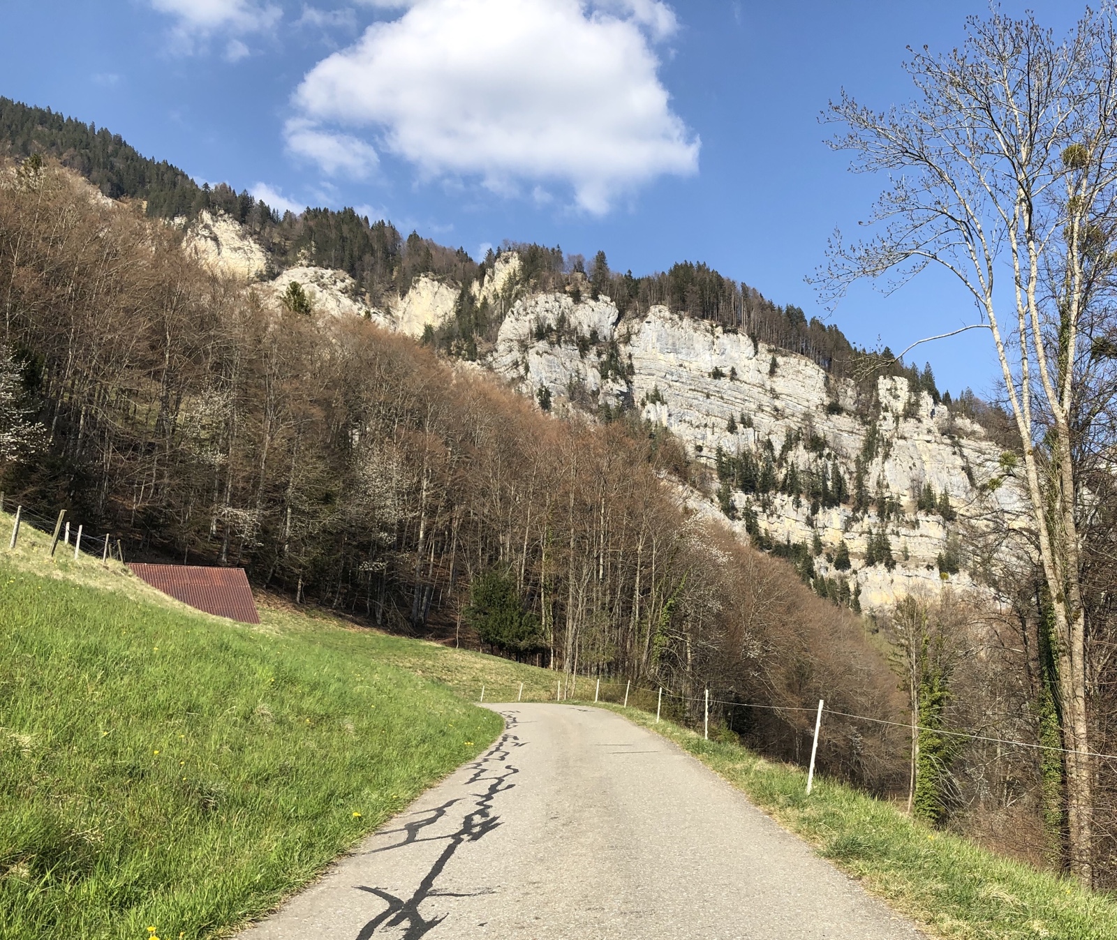 Am Hüsenbach entlang radle ich weiter und zweige dann ab Richtung Liechtenen, einem Industriekomplex an Ortseingang von Meiringen.