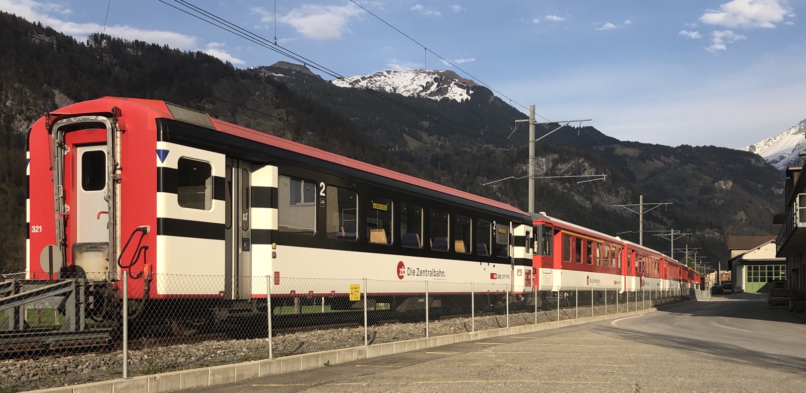Die Zentralbahn (zb) haben hier auf einem Anschlussgleis, 9 alte Reisezugwagen abgestellt. Nimmt mich Wunder was mit diesen Wagen, die durchaus noch etliche Jahre in einem “Entwicklungsland“ rollen könnten, nun passieren soll. Die zb wollte die Fahrzeuge vor 3 Jahren, nur gegen horrend viel Geld (40-400 Tsd Franken je Stück) an allgemeine Interessenten oder für Entwicklungshilfeprojekte verkaufen.