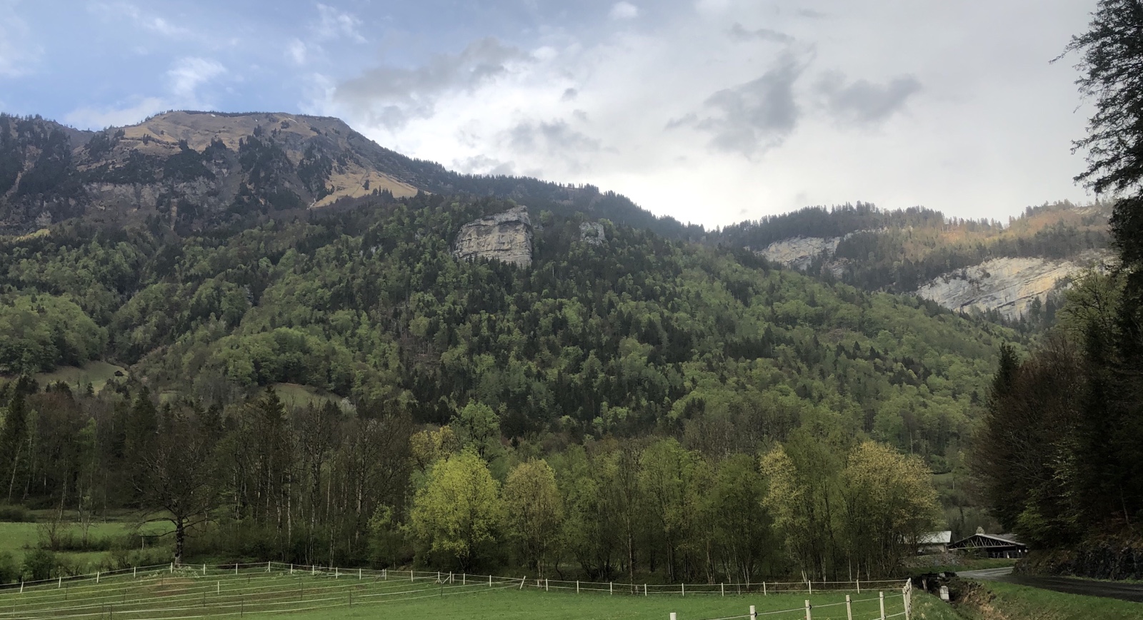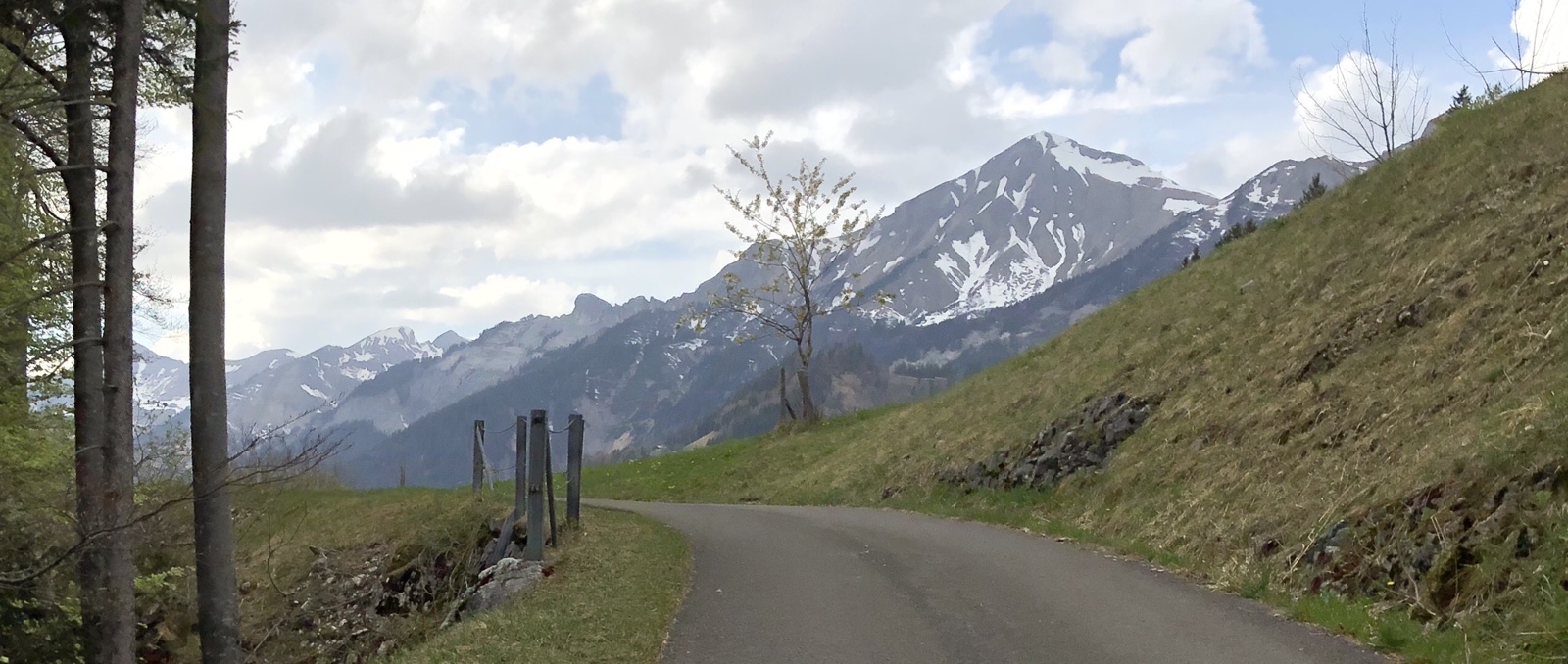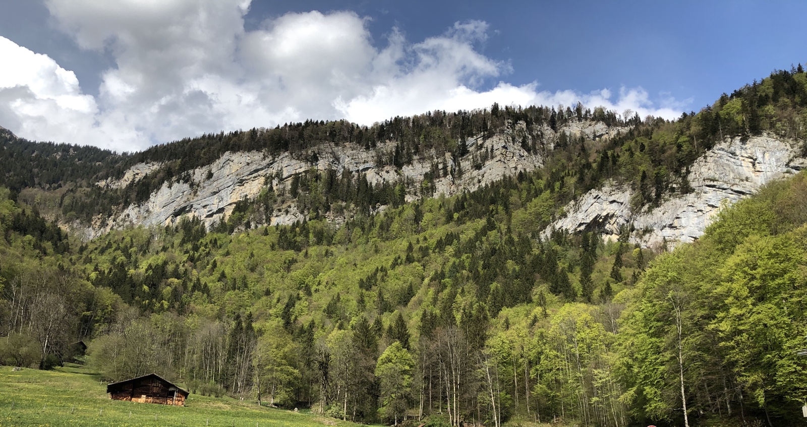 In mehreren Serpentinen, durch die Chälen führt die Strasse immer höher hinauf, immer schön neben den teils senkrechten Felswänden vorbei. Bei jeder Haarnadelkurve ändert sich die Aussicht.