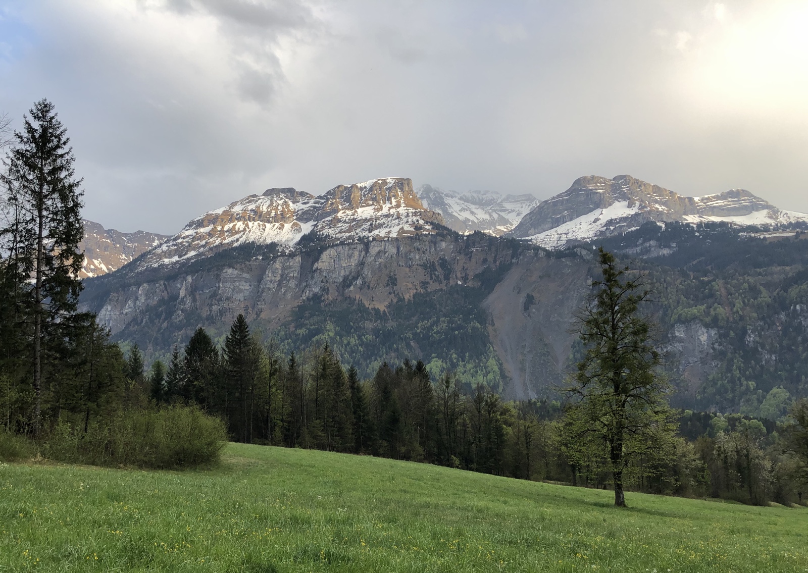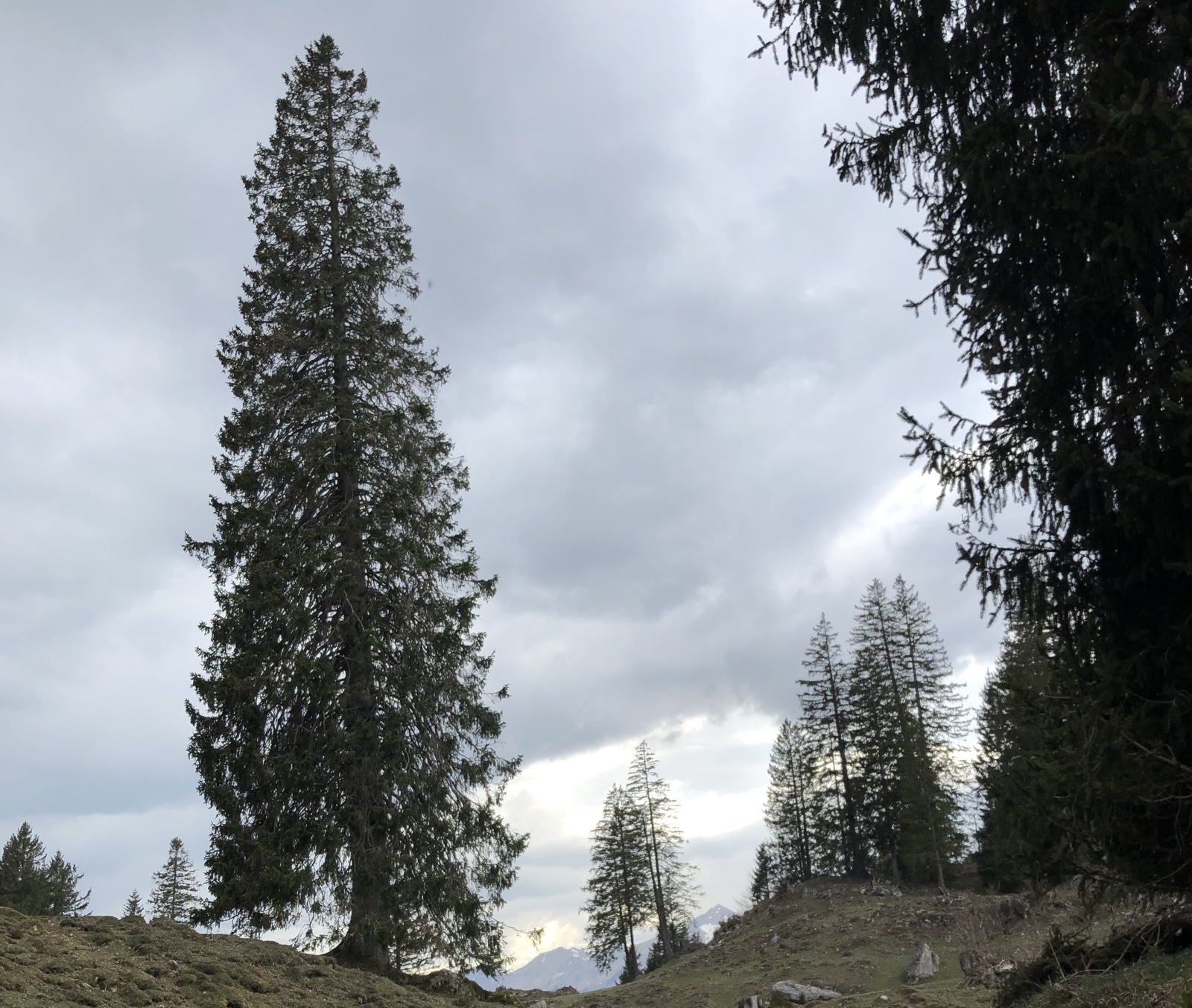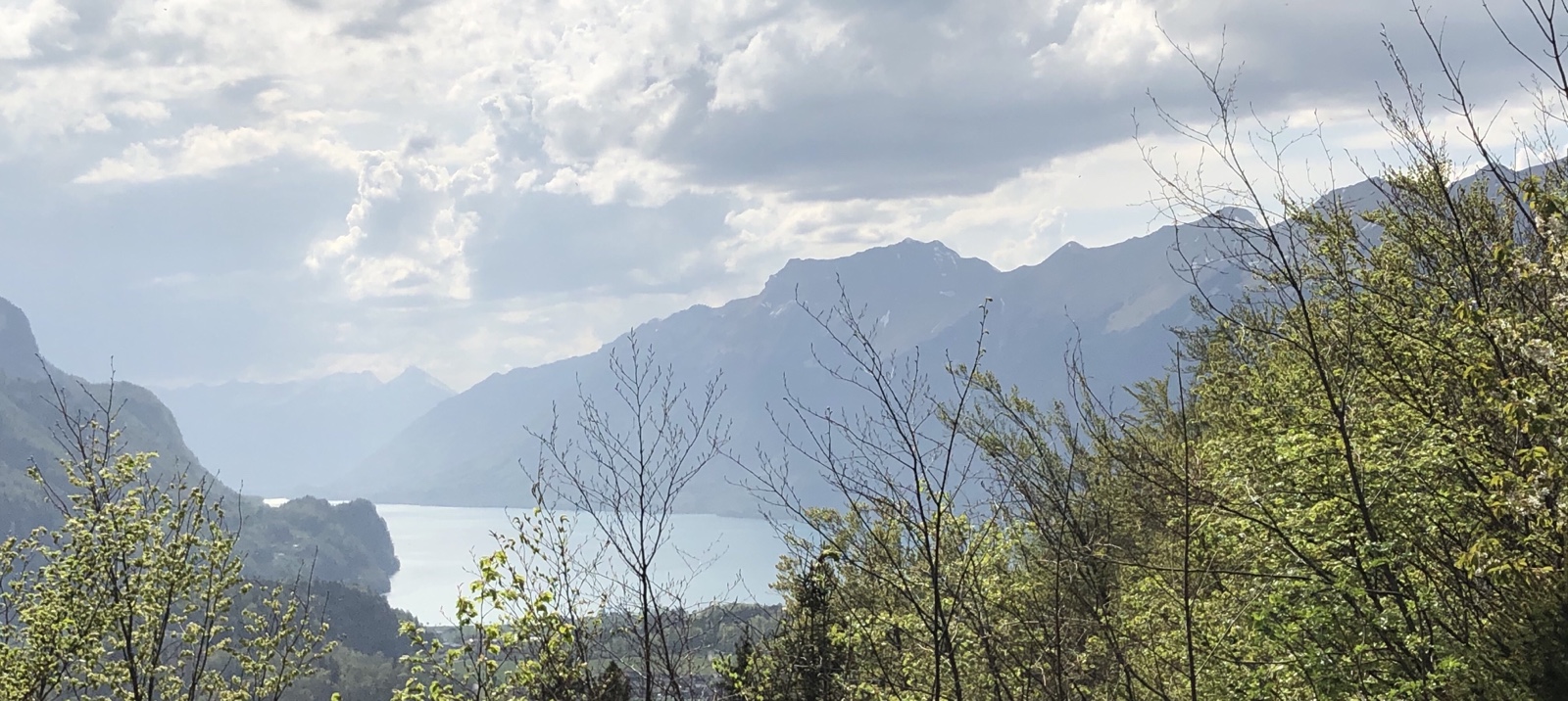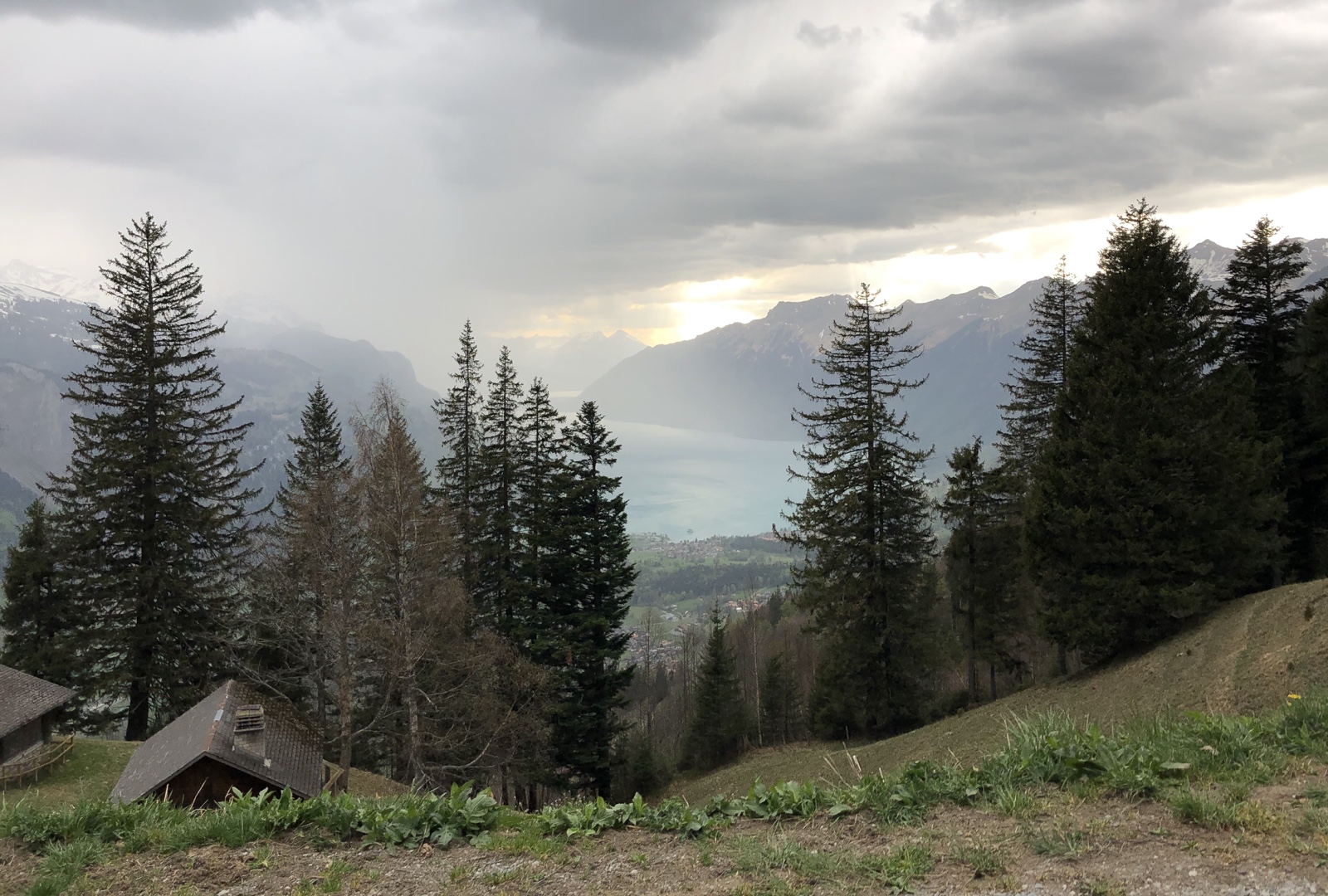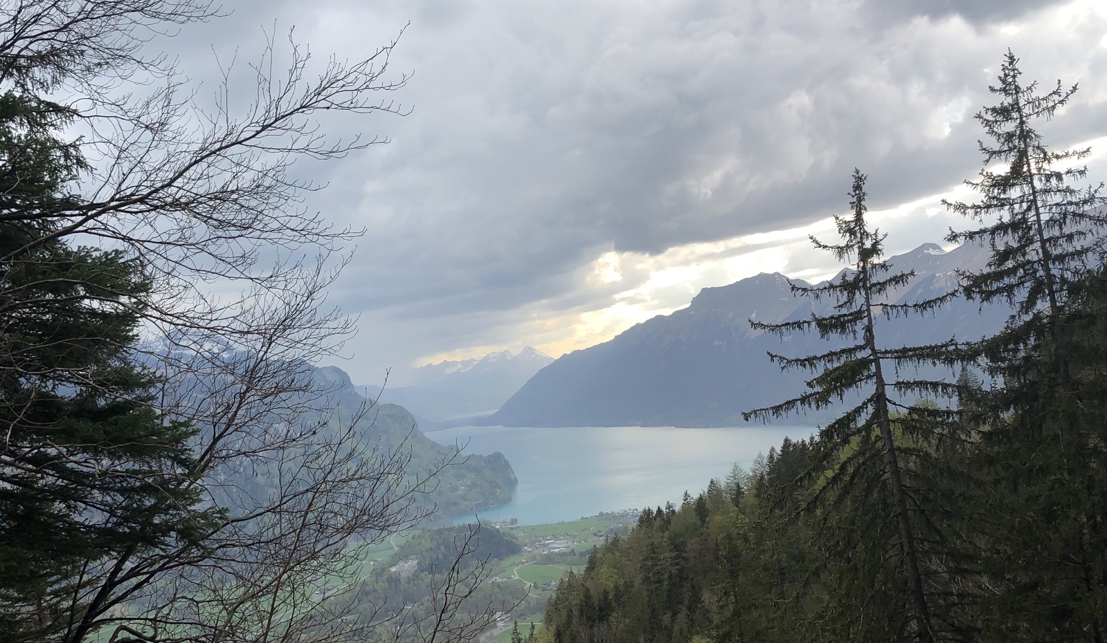 Ganz im Westen des Haltiwalds sehe ich ein erstes Mal aus dem Wald raus Richtung Brienzersee und zur Axalp.