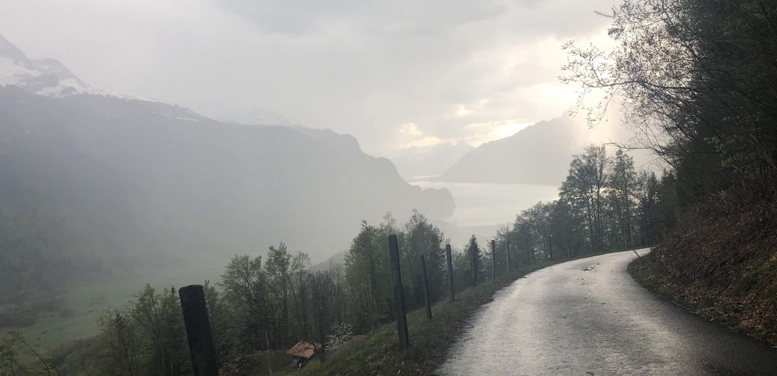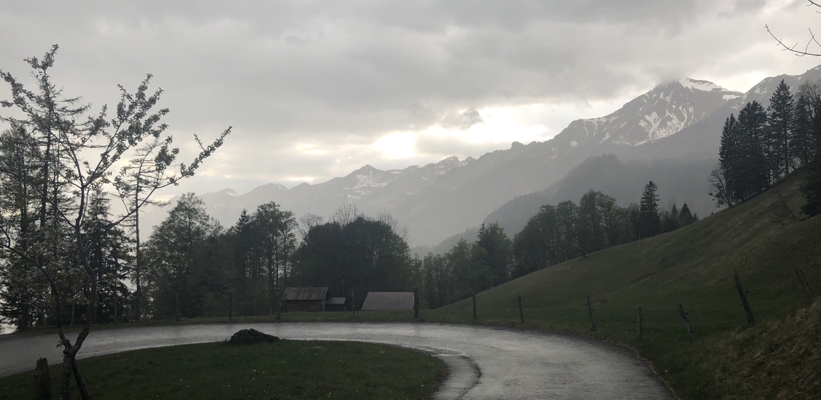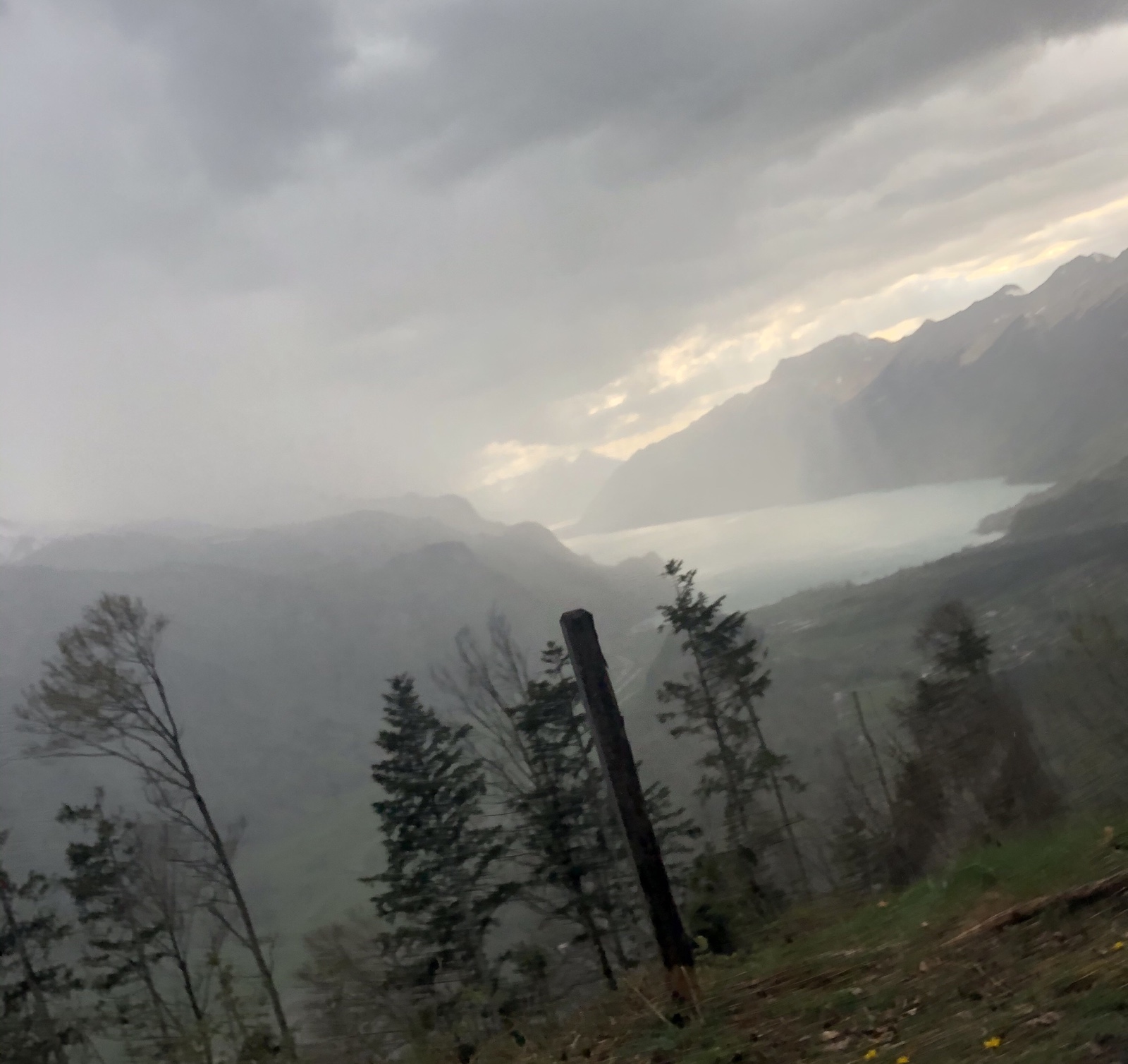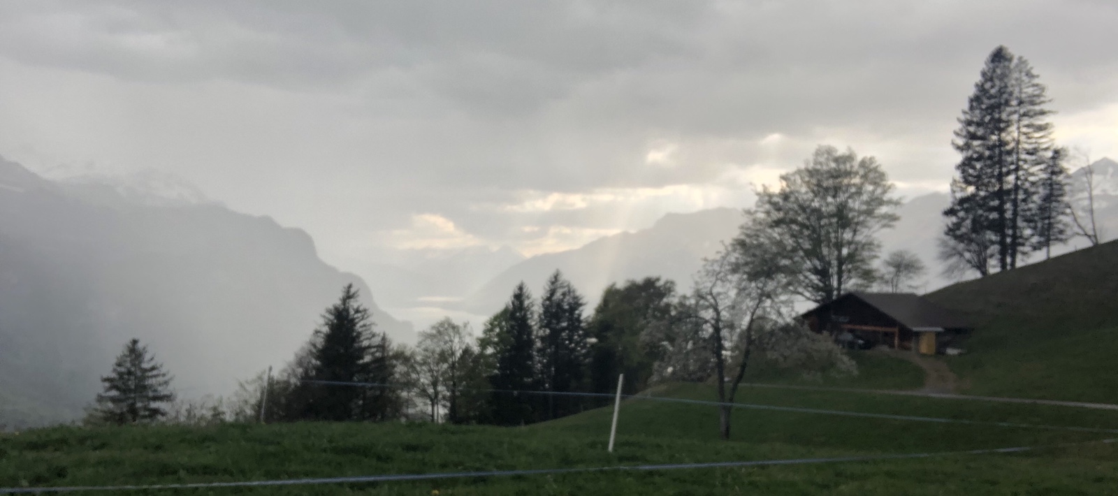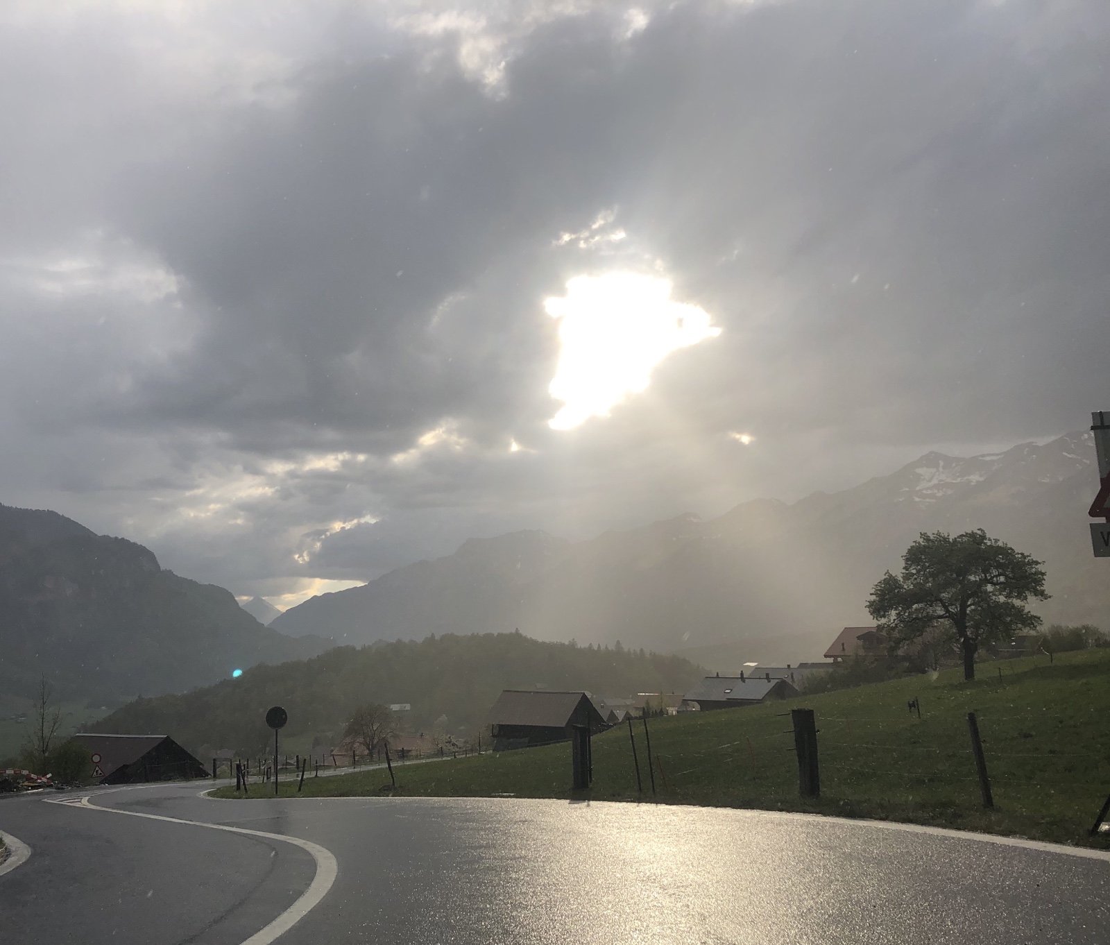 In Brienzwiler scheint mir ein weiterer Regenvorhang entgegenzukommen. Dieser löst sich aber urplötzlich auf.