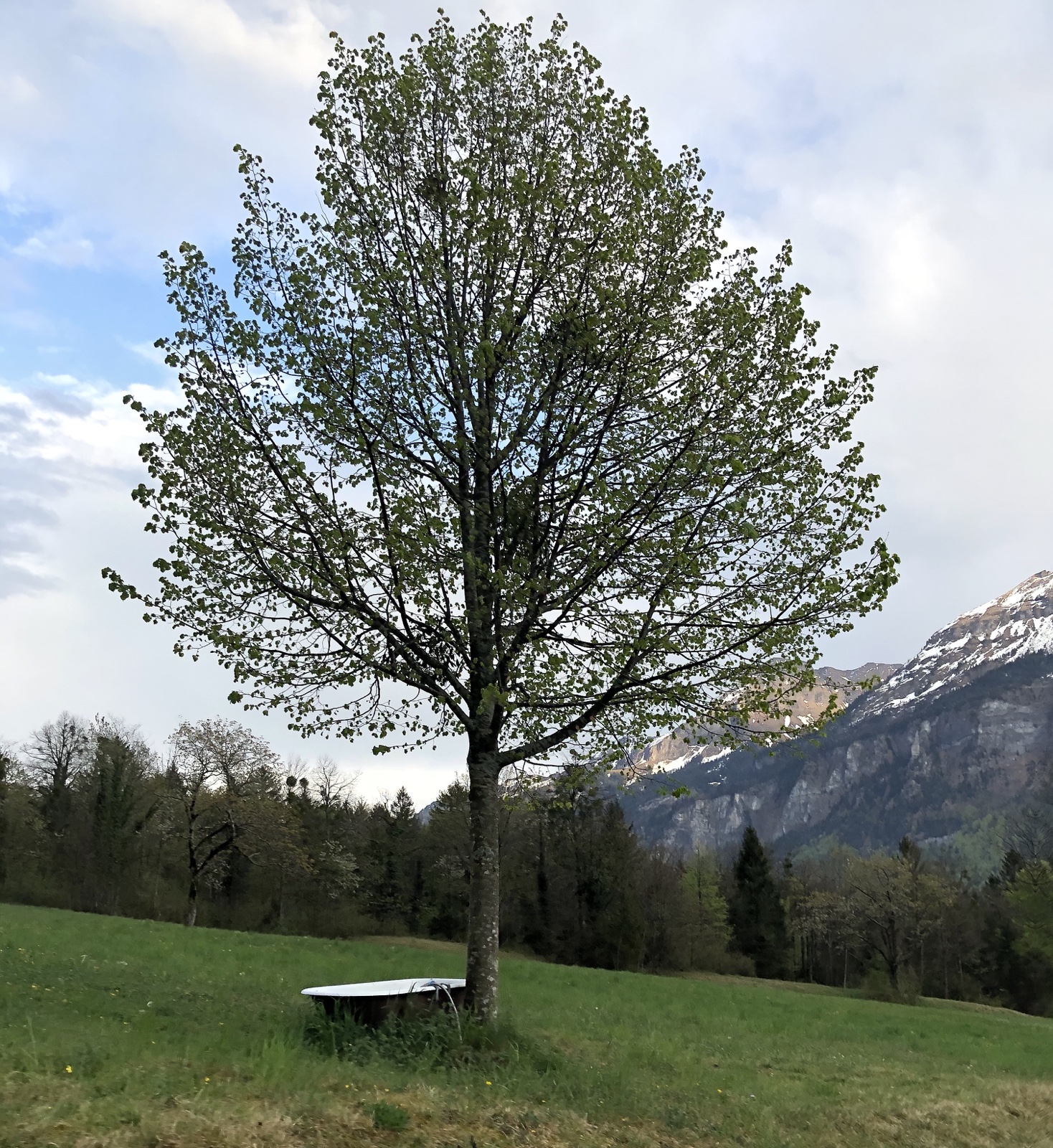 Erst in der Chälen finde ich einen Laubbaum unter dem die Strasse noch trocken zu sein scheint.