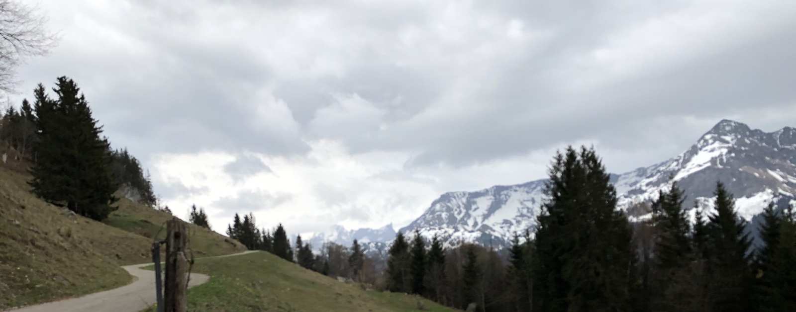 Da es aber nicht regnet, fahre ich weiter auf der nun kaum mehr ansteigenden Strasse bis ans Ende des Asphalts. Auf der Kiesstrasse fahre ich noch weiter bis zum Wanderwegkreuz der Wilervorsess auf 1400 Metern über Meer.