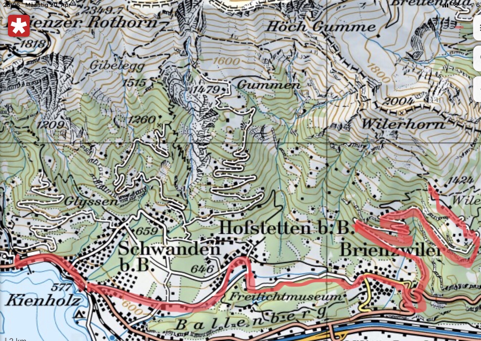 Hofstetten, am Ballenberg vorbei nach Brienzwiler und auf der Hauptstrasse dem Brünig zu.