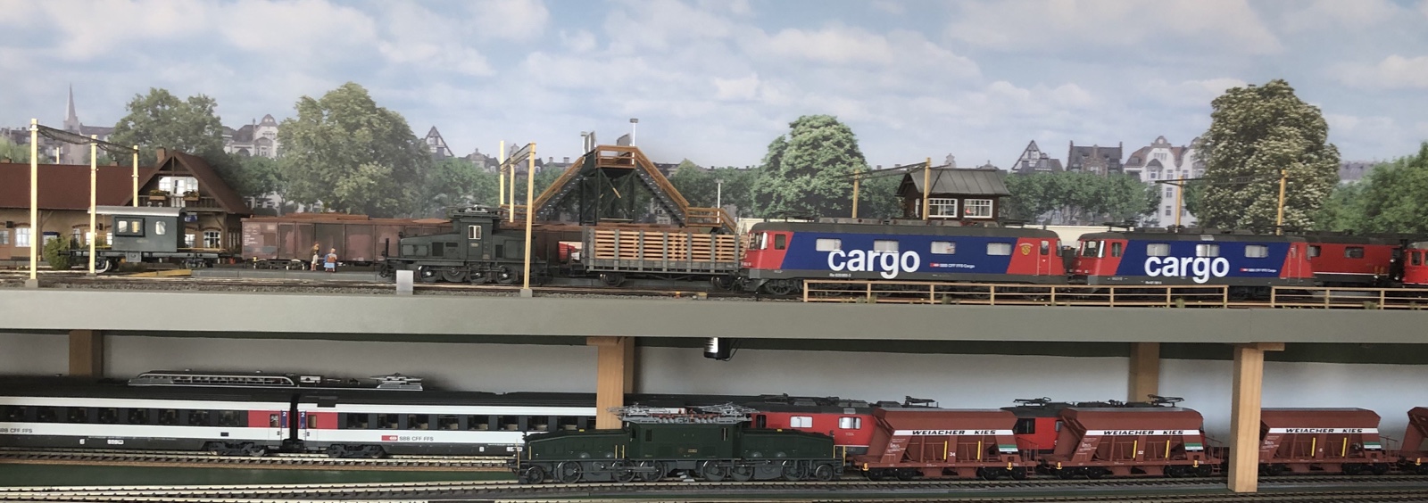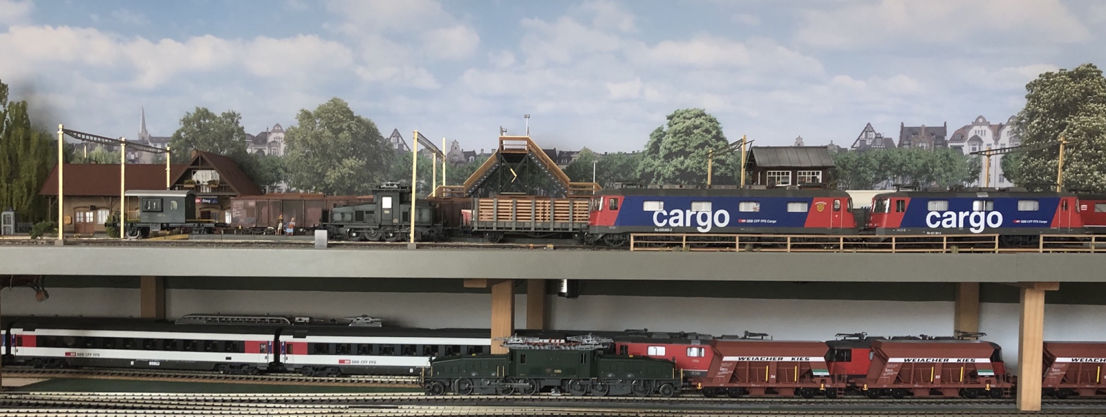 Anschliessend besuche ich meinen ehemaligen Kollegen und Freund Rolf. Er arbeitet bei der Eisenbahn, bei SBB Cargo. Sein grosses Hobby sind Eisenbahnen im Massstab 1:160, 1:32, sowie 1:1.