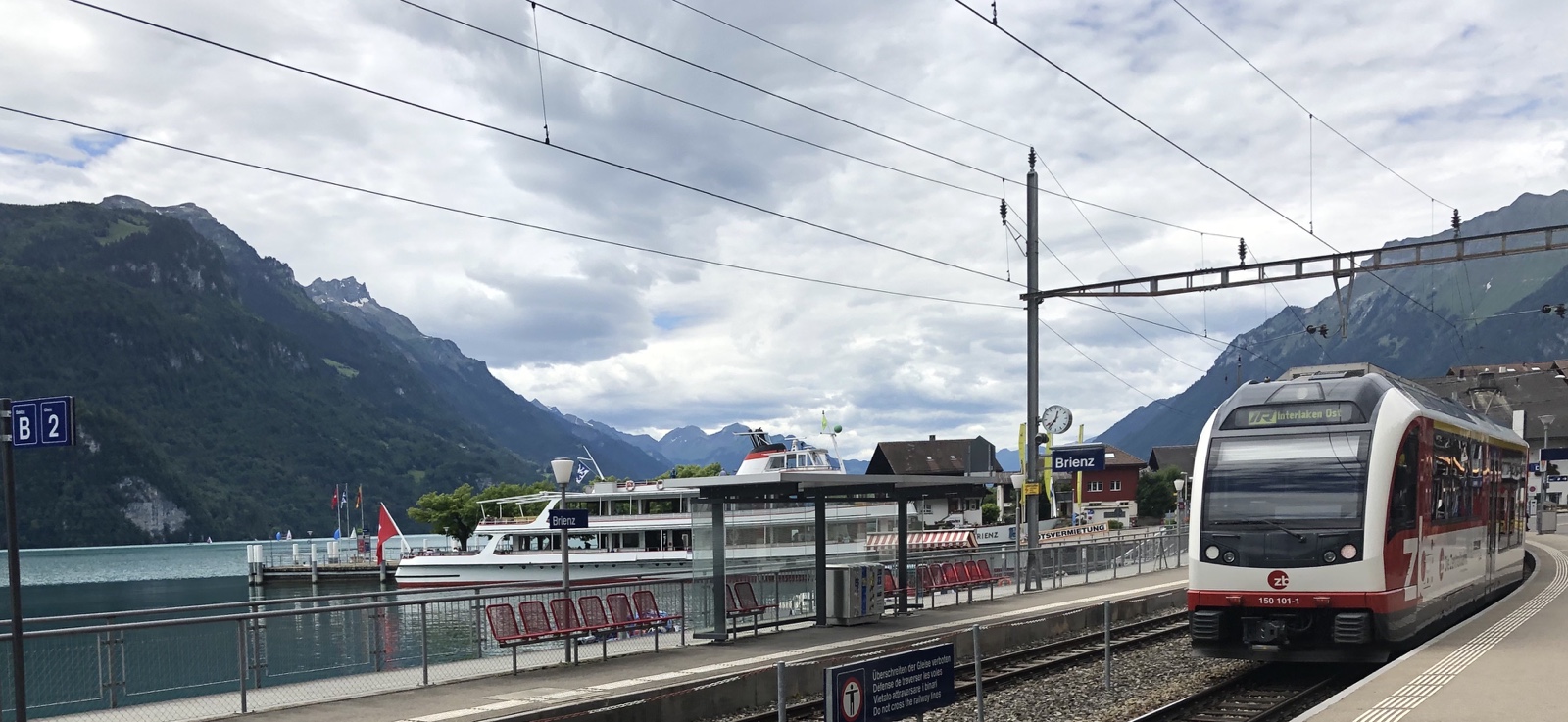 12.20 in Brienz. Lungere noch ein paar Minuten am Bahnhof herum.