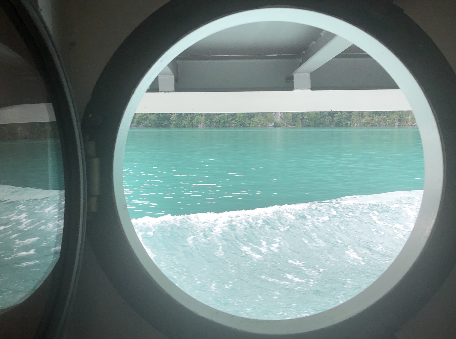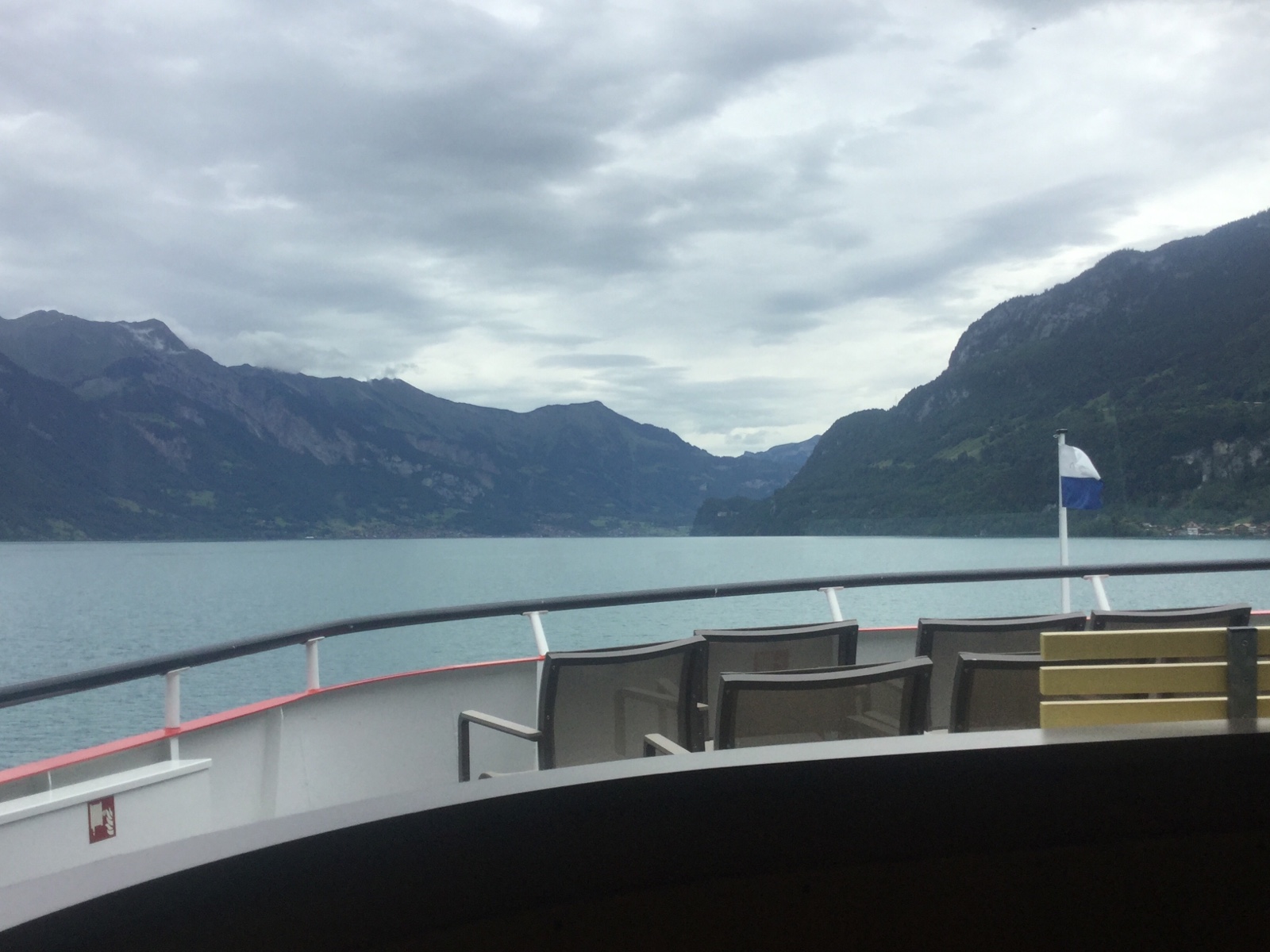 Es freut mich sehr, dass ich im Motorschiff Brienz heimwärts reisen darf. Ich bin erstaunt, wieviele Leute darauf gewartet haben, wieder einmal mit dem Schiff, auf dem schönsten See der Schweiz reisen zu dürfen. Der nur noch mit wenigen Tischen für total 24 Reisende bestuhlte vordere Restaurationsraum im Obergeschoss ist rasch voll.
