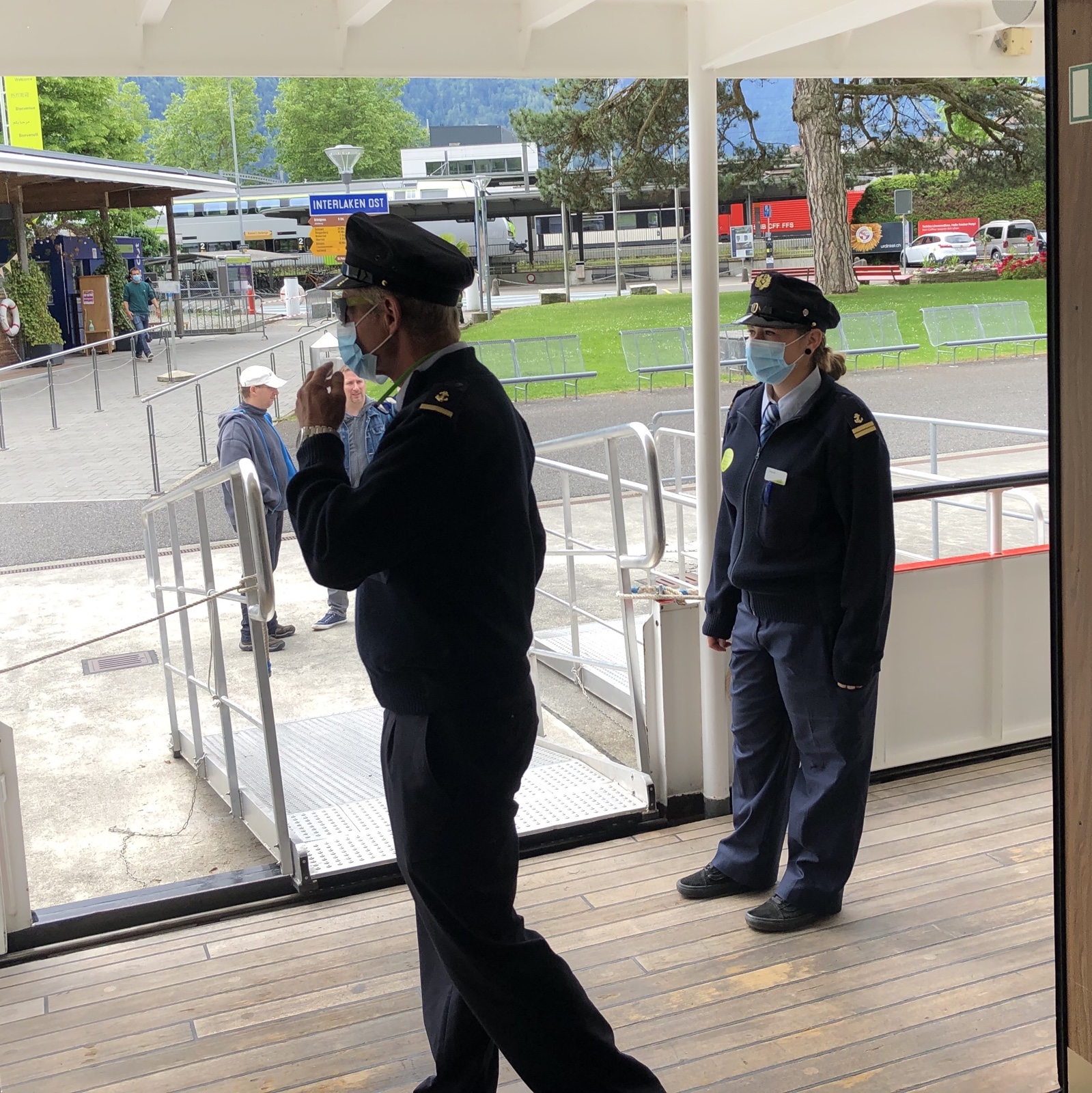 Die Schiffländte Interlaken Ost BrS wurde COVID-19 gerecht umgebaut. Die Personale tragen allesamt Masken. Diese Maskengesichter sind für mich noch immer ein ungewohnter Anblick. Ob wir im ÖV oder dort wo gleichzeitig viele Menschen zusammenkommen, je wieder ohne Maske uns bewegen dürfen? Ich hoffe es sehr!