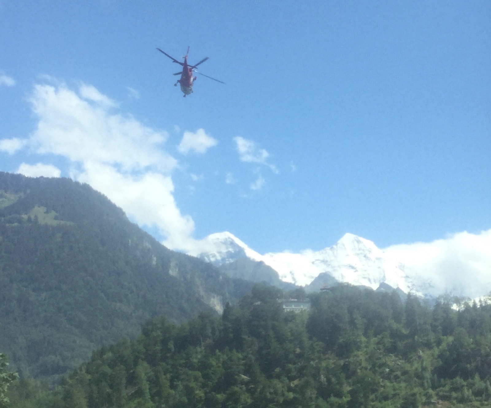 Hinterher beobachte ich An- und Abflüge von diversen Helikoptern. Die REGA macht offensichtlich Filmaufnahmen mithilfe eines Begleithelikopters.