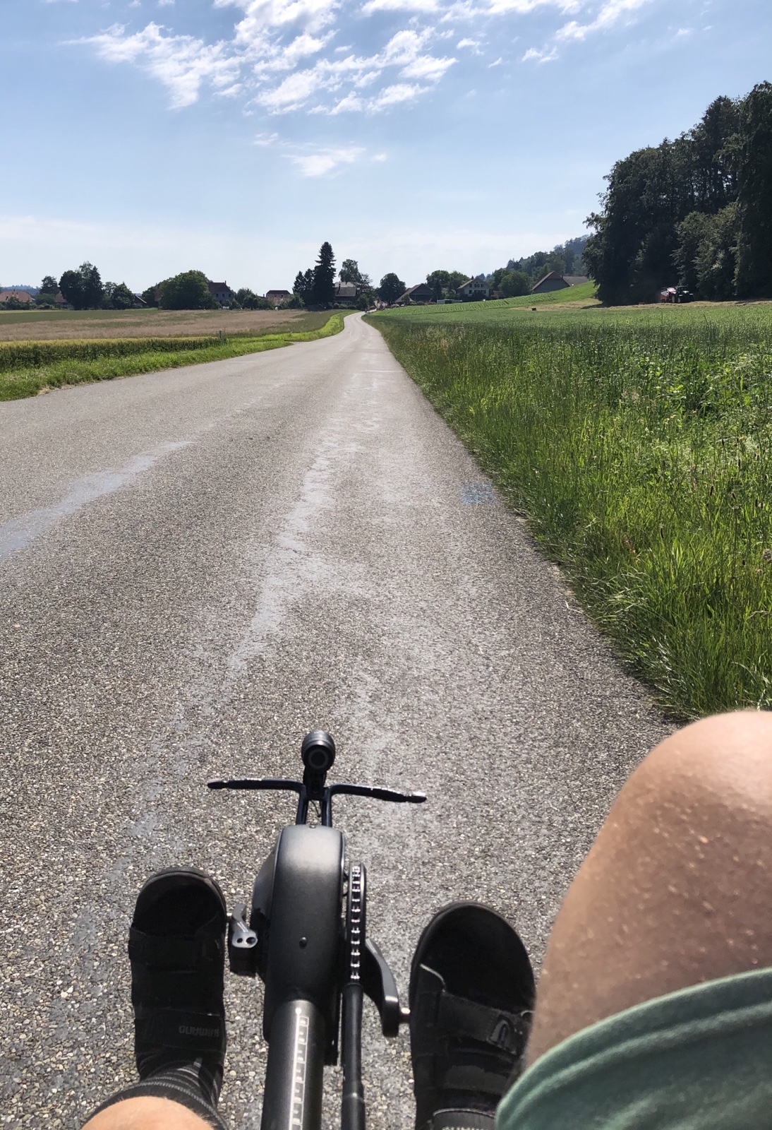 Schon kurz nach 9 Uhr kann ich mich auf mein Trike setzen und losradeln.