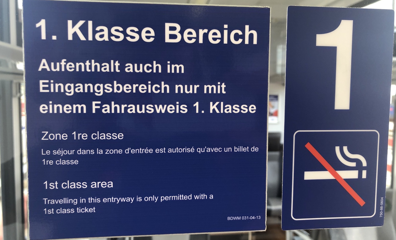 Als Fahrziel ist zwar “S 17 Wohlen“ angeschrieben. Der Zug mus zuerst aber seinen Endbahnhof Dietikon hinter mir erreichen.Endlich wird mal klar angezeigt dass Reisende der 2.Klasse in den Eingangsbereichen der 1. Klasse nichts zu suchen haben!
