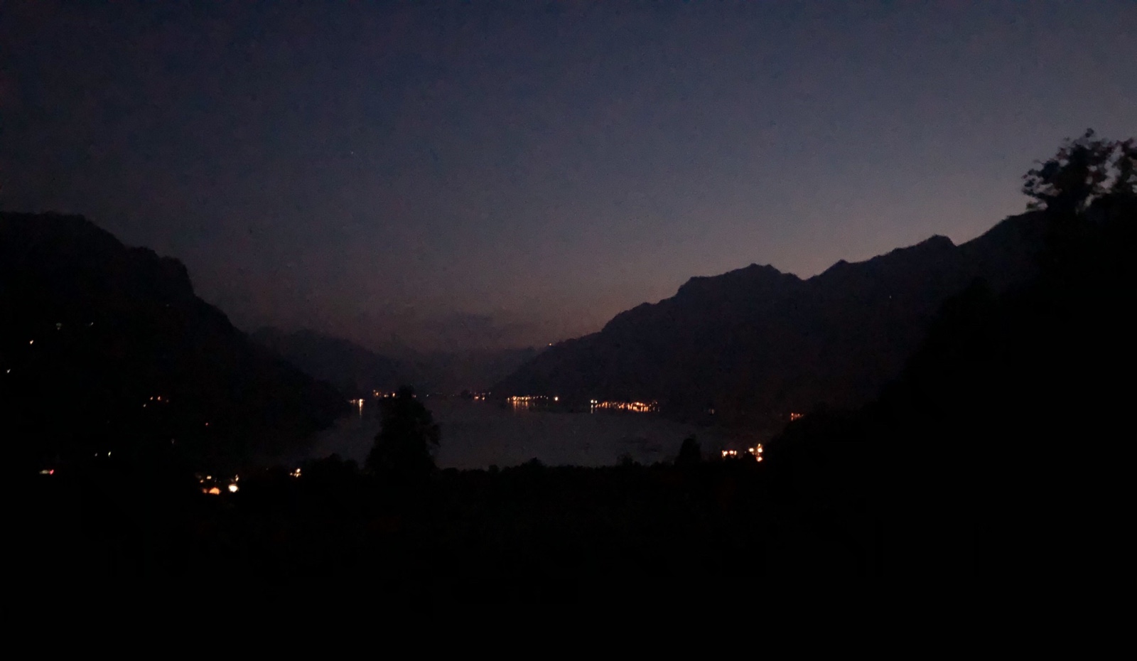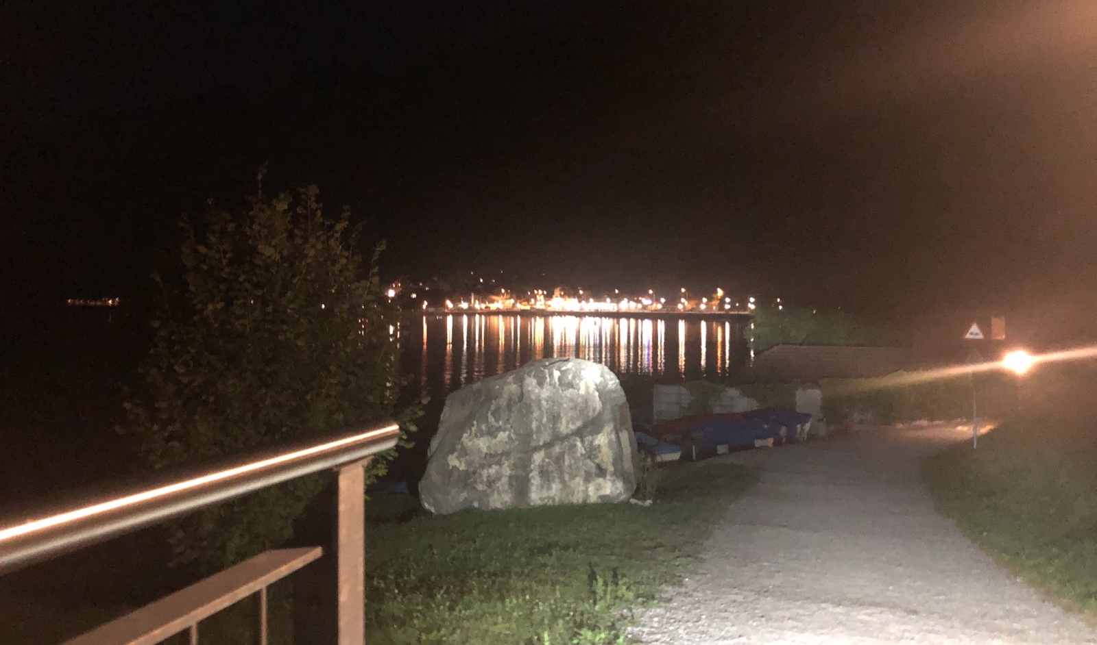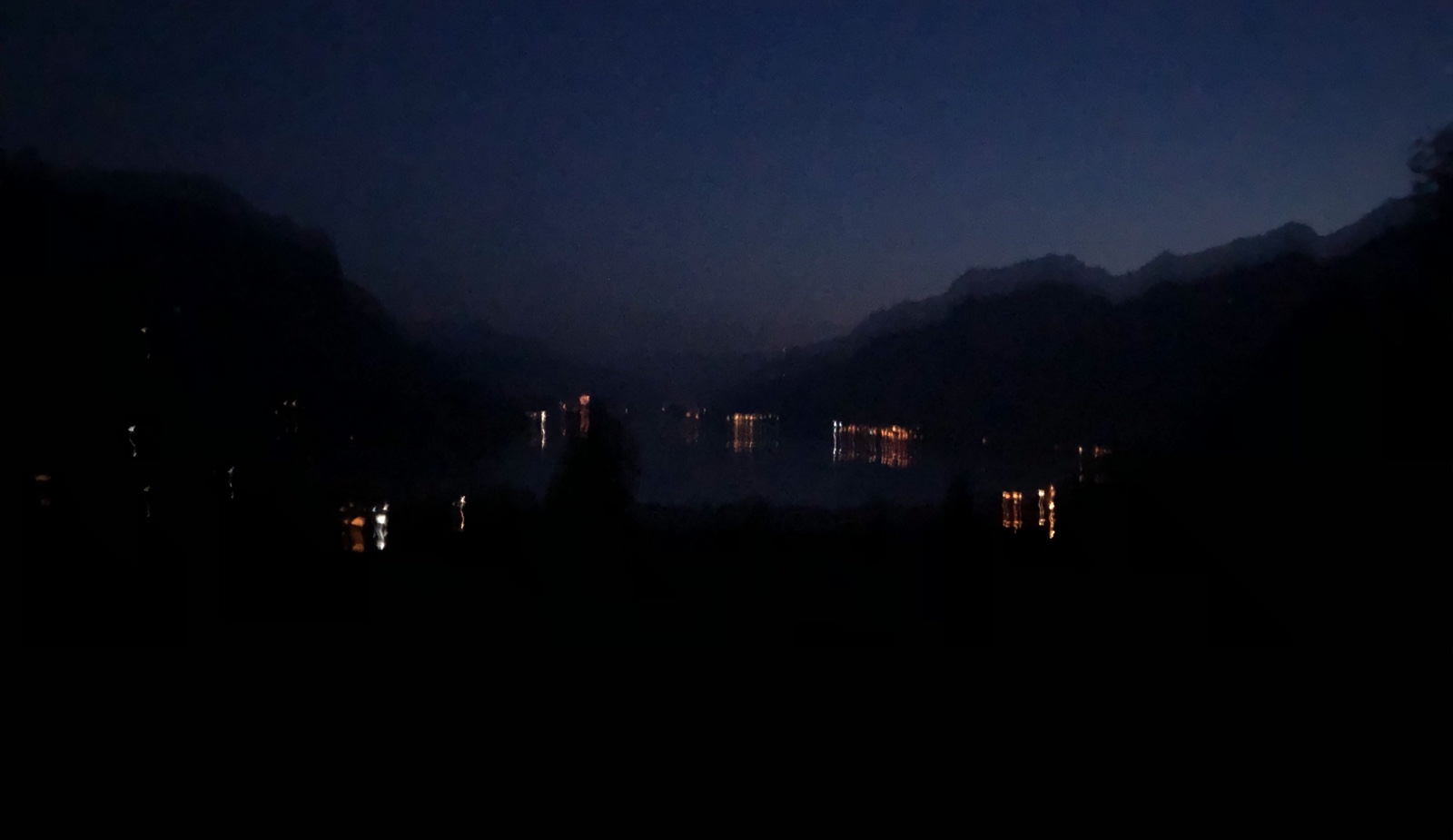 Von der Brücke über den Glyssibach, geniesse ich um 22.33 eine tolle Aussicht auf den hell erleuchteten Quai von Brienz.