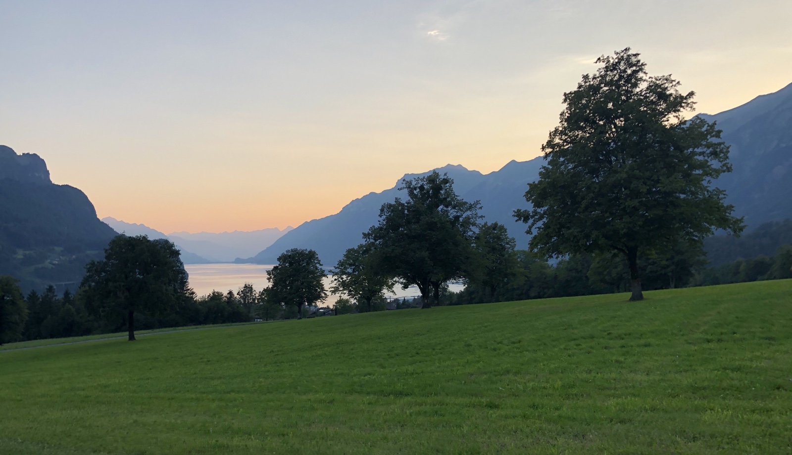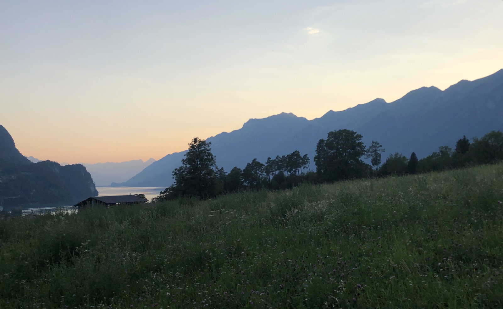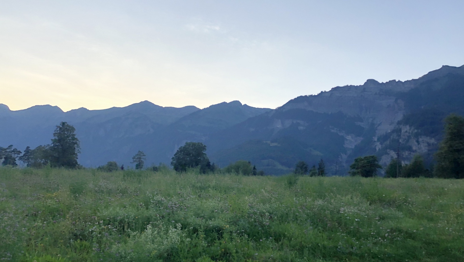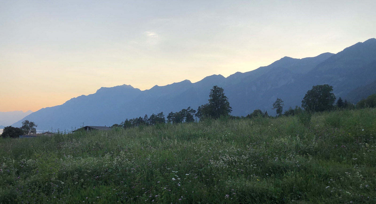 Die Berge auf der Nordseite von Brienz liegen schon alle im Schatten und auch auf der Niesenkette, ist die Sonne nur noch zu erahnen.