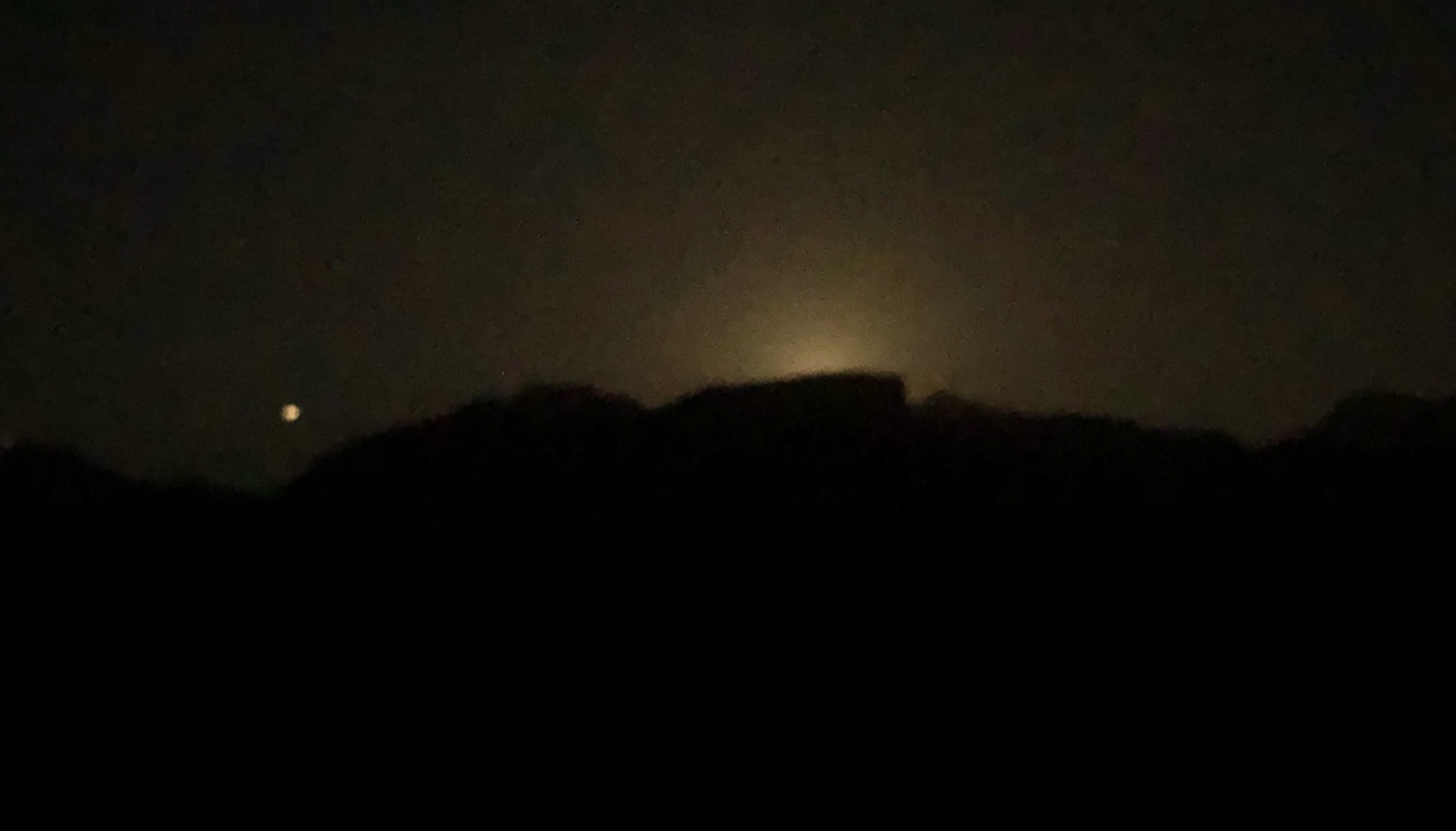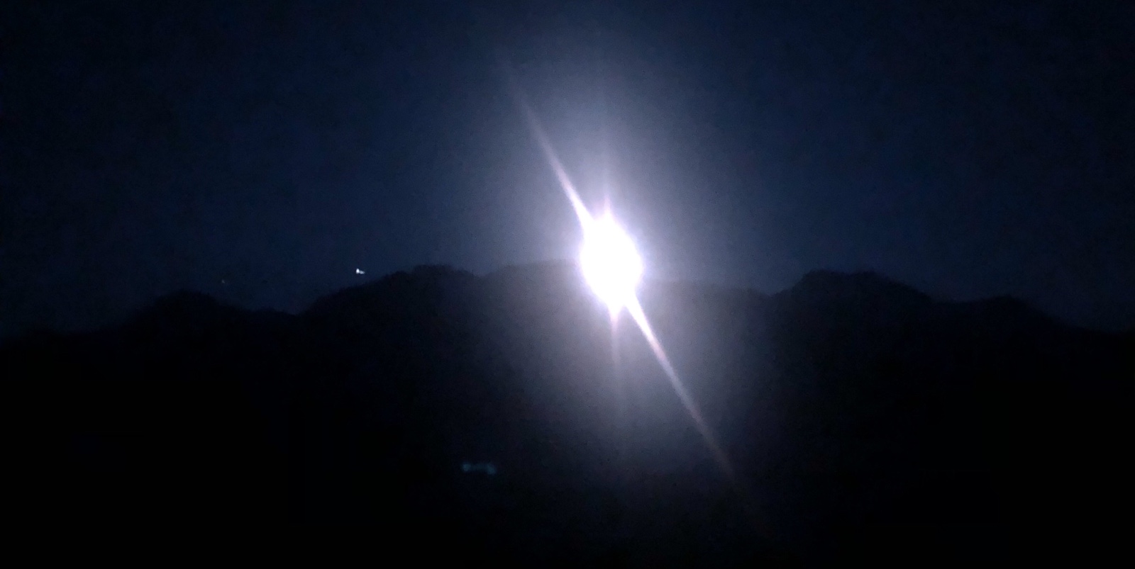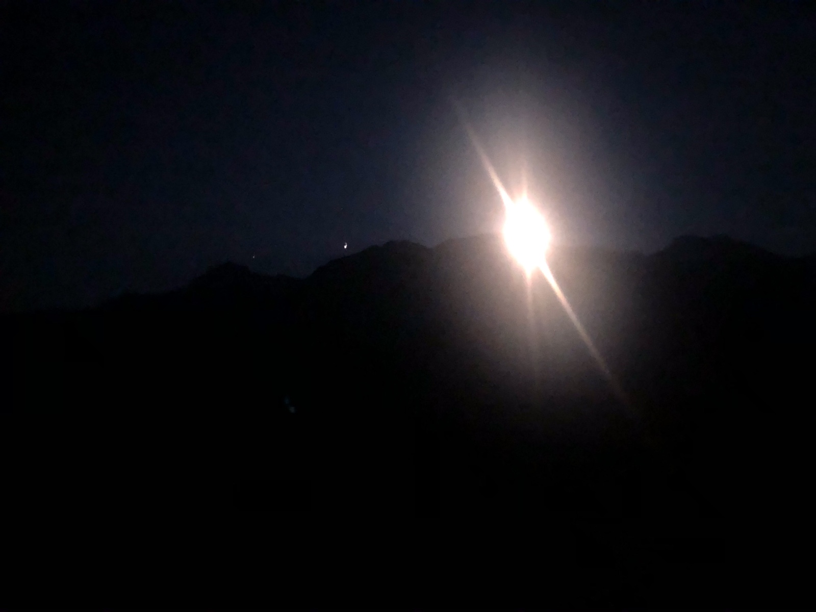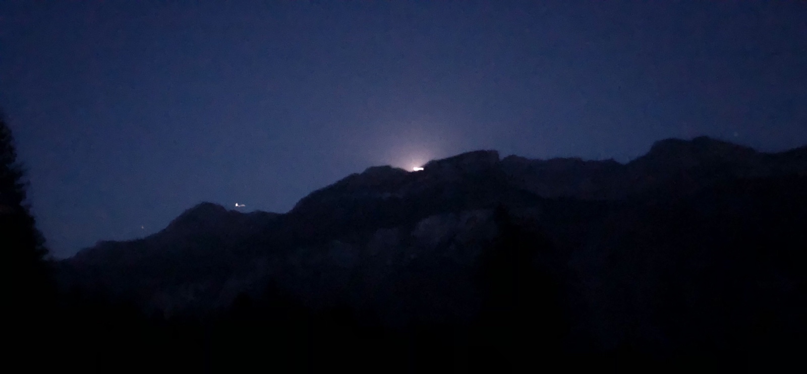 Immer wieder geht der Mond ab 21.55 Uhr auf und unter beziehungsweise verschwindet hinter den Bergen.