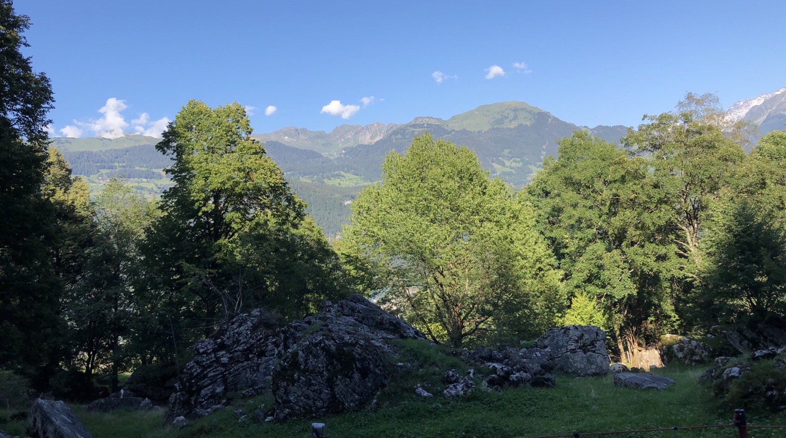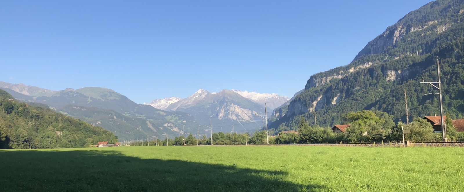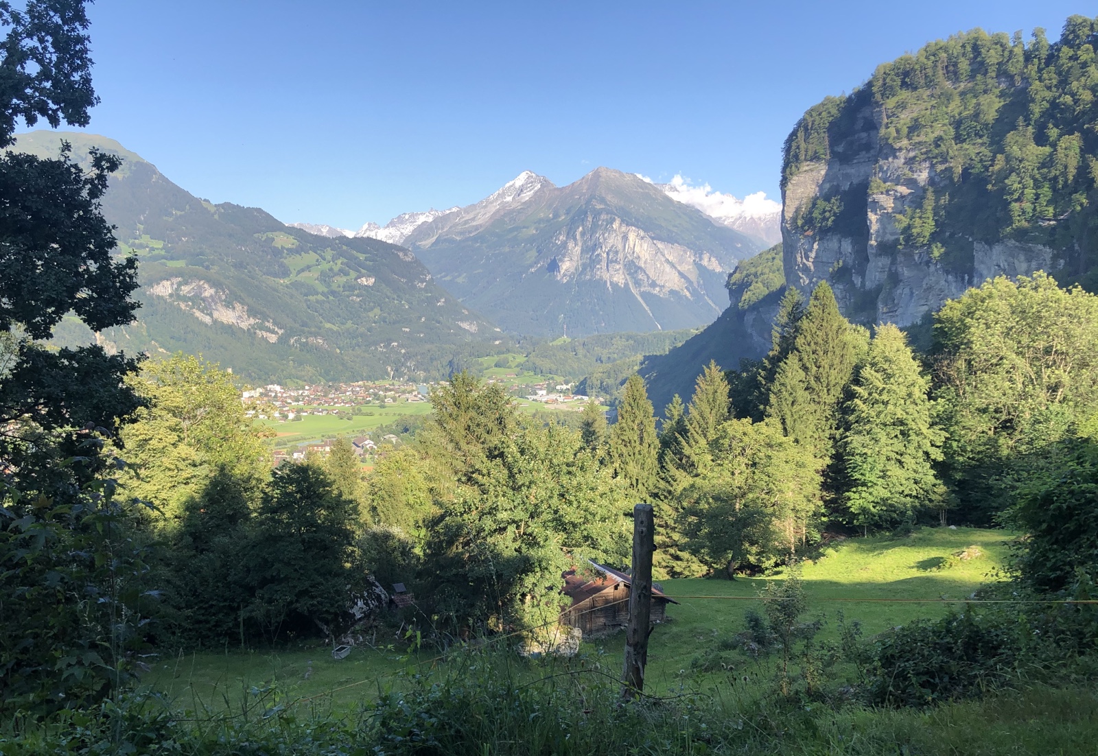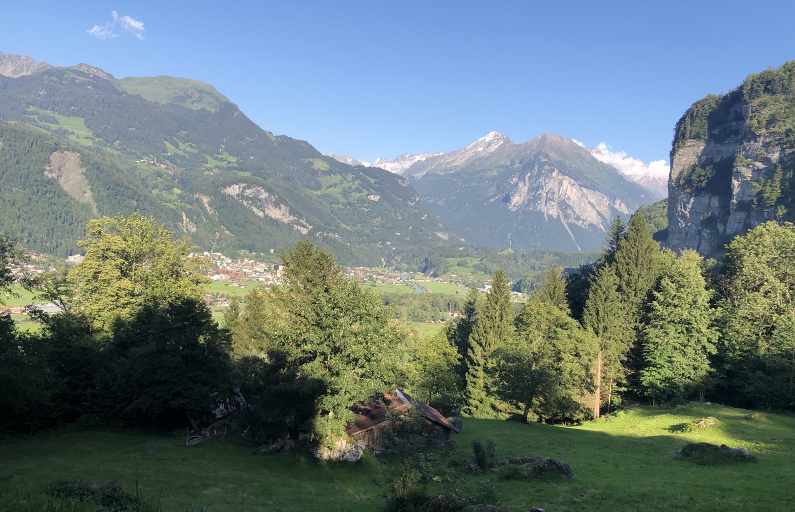 Ausblick zum Hasliberg und zum Felssturz von Meiringen.